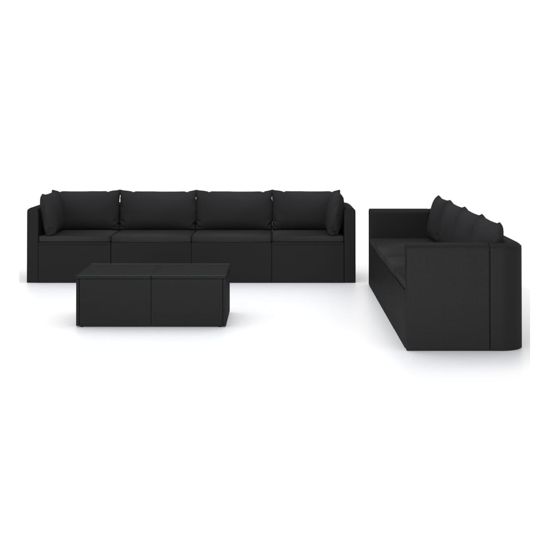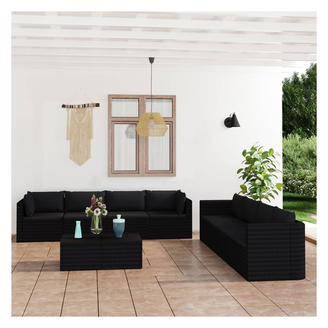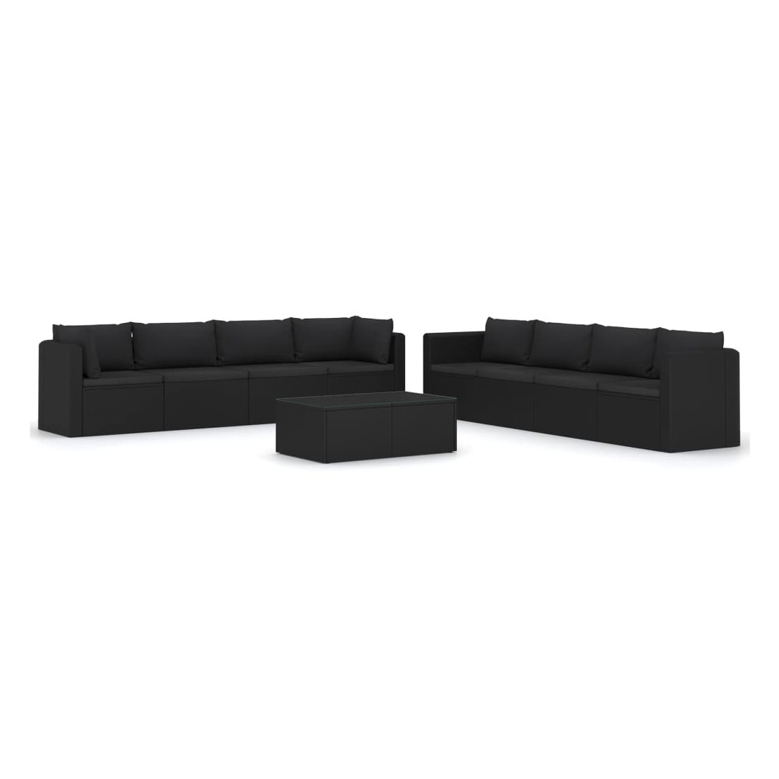 Salon de jardin 9 pcs avec coussins Résine tressée Noir