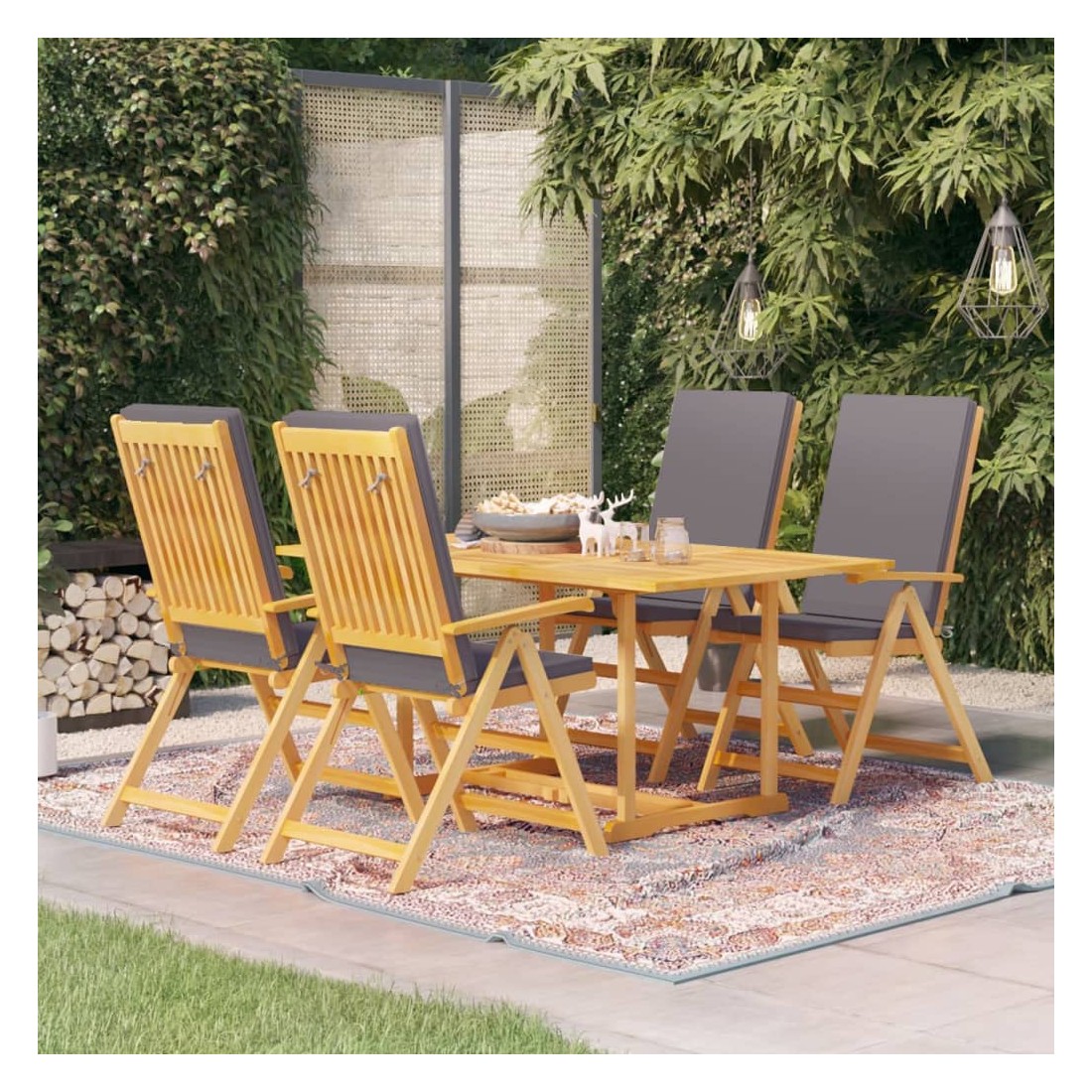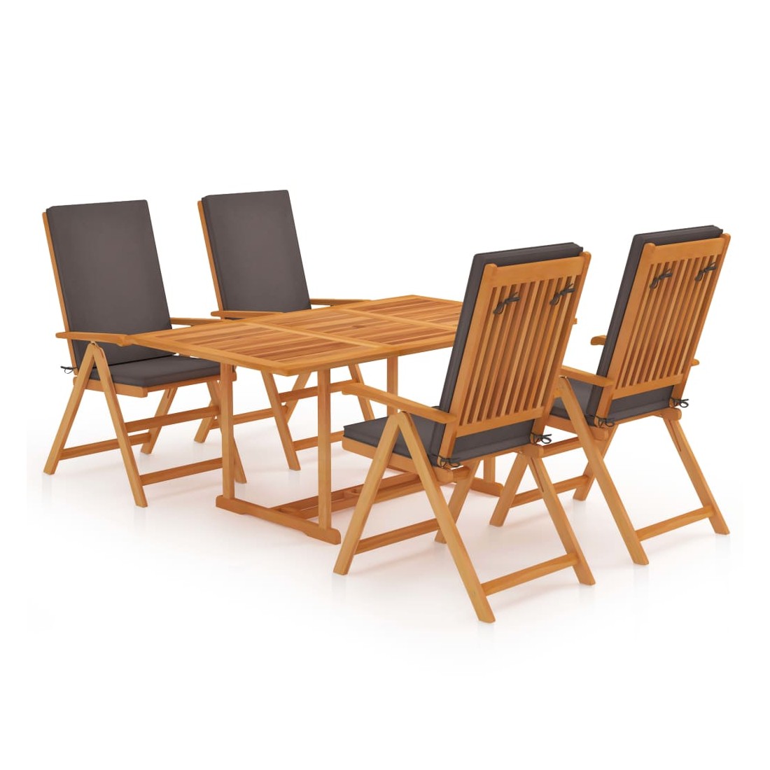 Ensemble à manger de jardin 5pcs coussins gris Bois teck massif