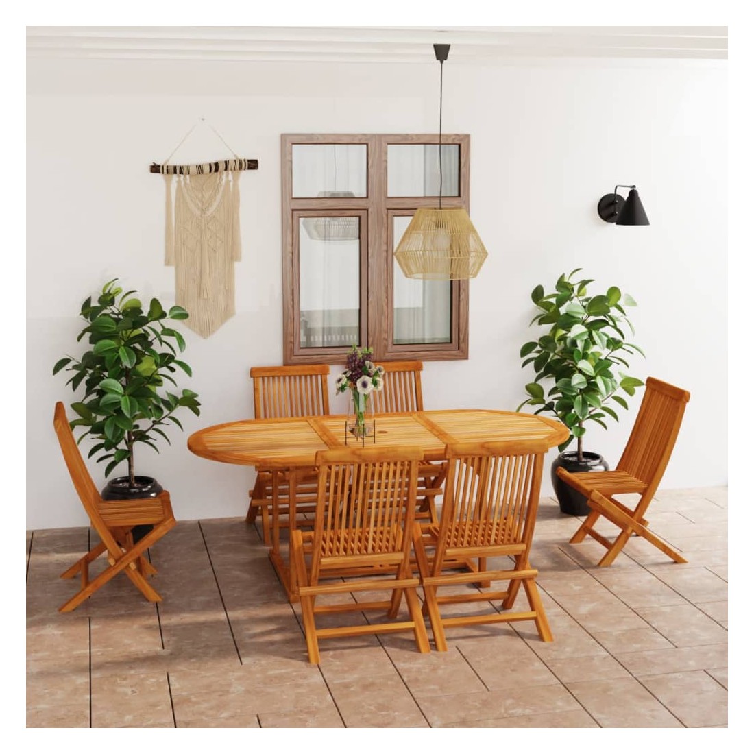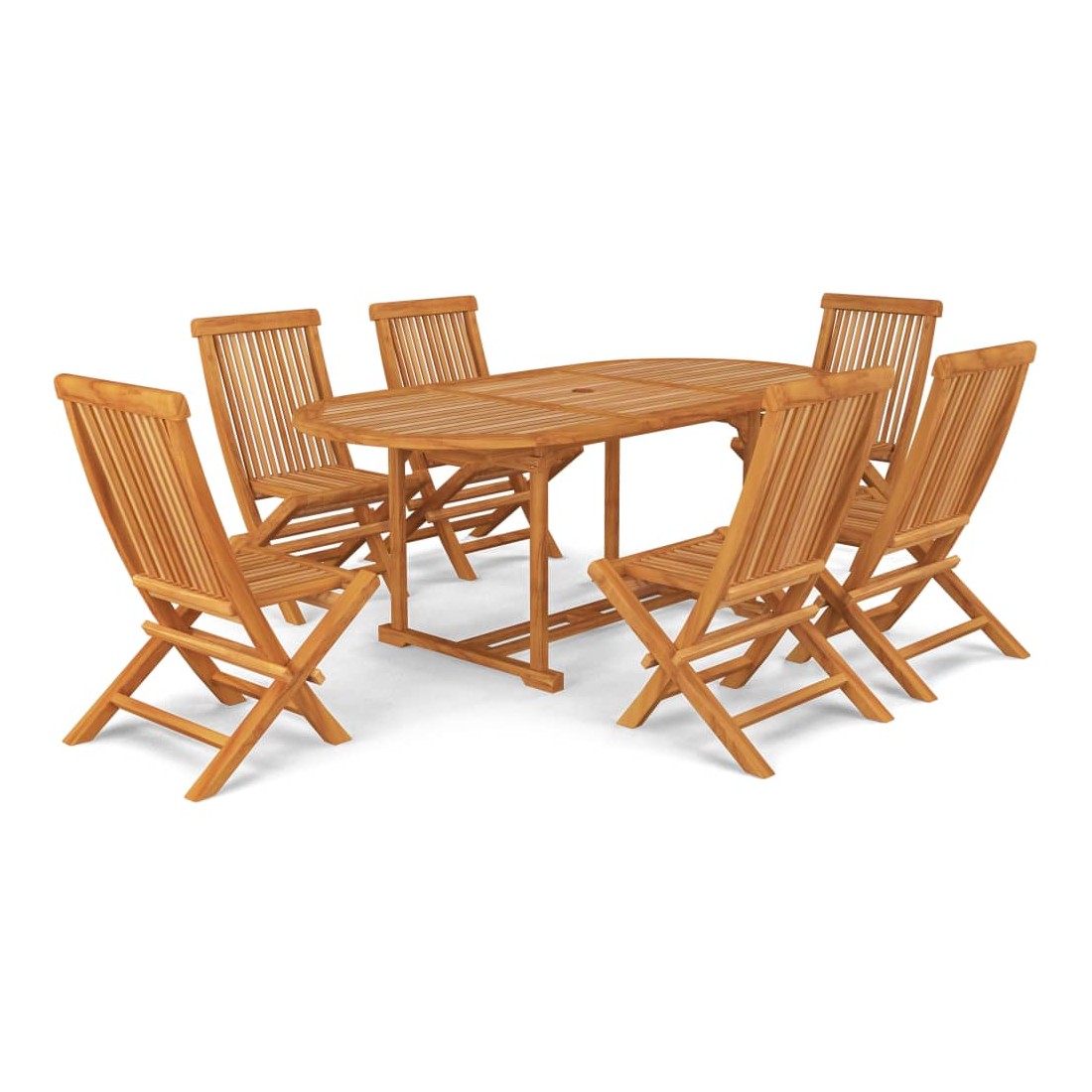 Cet ensemble de jardin en bois est parfait pour vos repas en plein air ou pour vous détendre dans le jardin ou sur le patio. Il est également idéal pour une utilisation à l'intérieur. Fabriquée en bois dur de teck extrêmement durable, cette pièce de meuble en teck a été chevronnée, séchée au four puis finement poncée pour lui donner un aspect très lisse. Le bois de teck est connu pour sa résistance exceptionnelle aux intempéries, ce qui le rend bien plus adapté aux meubles de jardin que tout autre type de bois. Le bois de teck est le choix idéal si vous souhaitez acheter une pièce de meubles de jardin durable. De plus, ils résistent également à l’humidité et aux insectes. L’ensemble est appliqué avec une belle finition pour donner au bois une couleur chaude. Avec son design spécial, la table de salle à manger peut être allongée au maximum de 200 cm lorsque de l’espace supplémentaire est nécessaire. Elle a également un trou pour le parasol pour fournir une protection contre le soleil. En outre, les chaises peuvent être facilement pliées lorsqu'elles ne sont pas utilisées. Ils vous offrent un confort et une grande commodité pour passer du temps avec votre famille et vos amis. En outre, cet ensemble est également facile à nettoyer avec un chiffon humide.