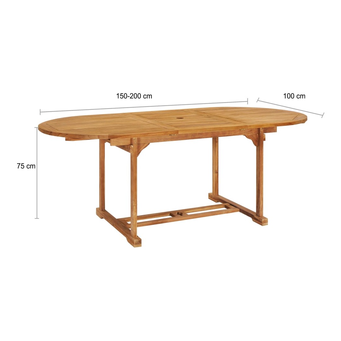 • Dimensions de la table : (150-200) x 100 x 75 cm (L x l x H)