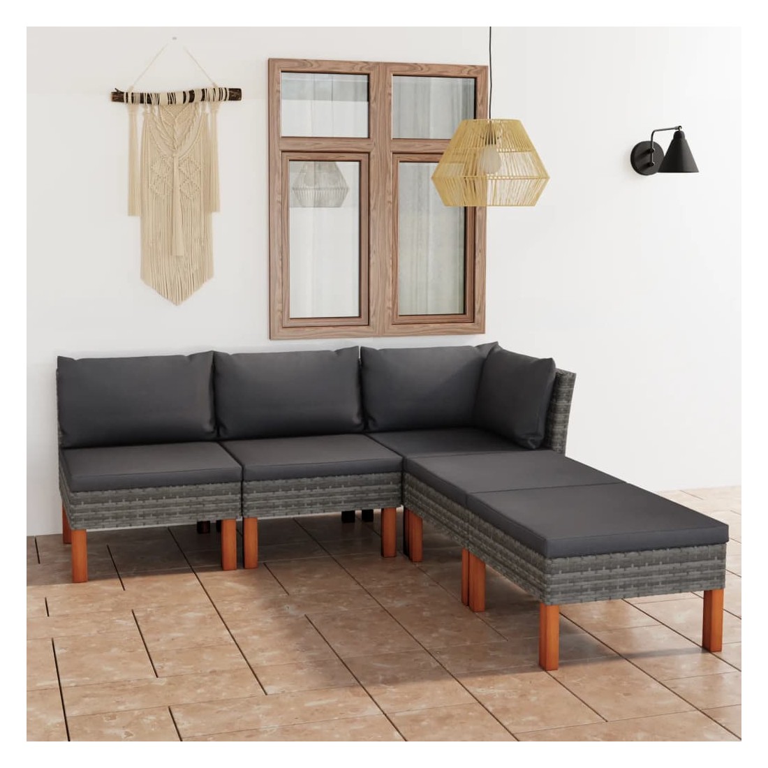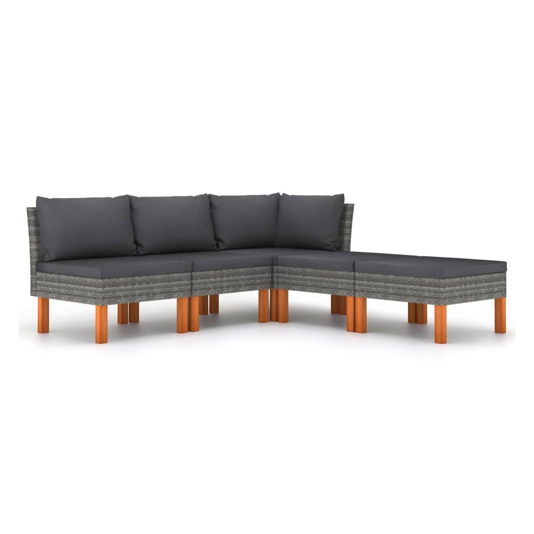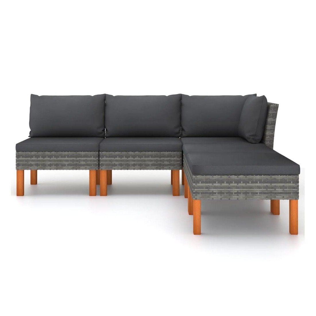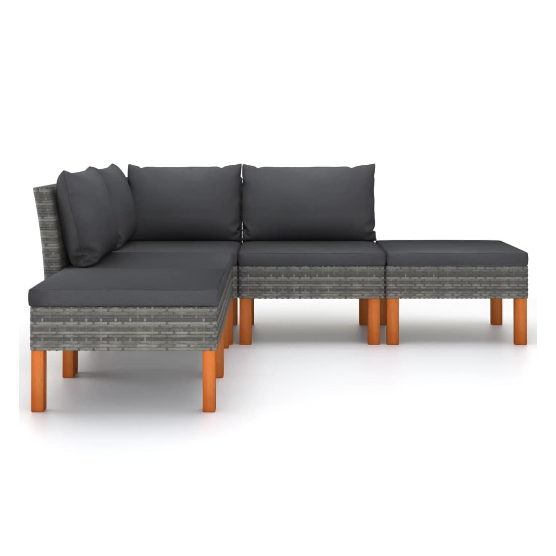 Cet ensemble de salon de jardin élégant et confortable, est un choix idéal pour vous détendre et profiter du beau temps, faire une sieste ou discuter avec votre famille ou vos amis. Doté d’un cadre en acier enduit de poudre recouvert de résine tressée, l'ensemble de canapé est résistant aux intempéries et facile à nettoyer. Les pieds en bois d’eucalyptus massif contribuent à sa robustesse et à sa stabilité. L'ensemble de salon est livré avec des coussins rembourrés pour un confort suprême. Dotée d'une fermeture éclair, la housse des coussins est amovible et lavable. De plus, cet ensemble de canapés d'extérieur peut être facilement déplacé pour s’adapter à n’importe quelle configuration grâce à sa construction légère. Remarque : afin de prolonger la durée de vie des meubles d'extérieur, nous vous recommandons de les protéger avec une housse imperméable.