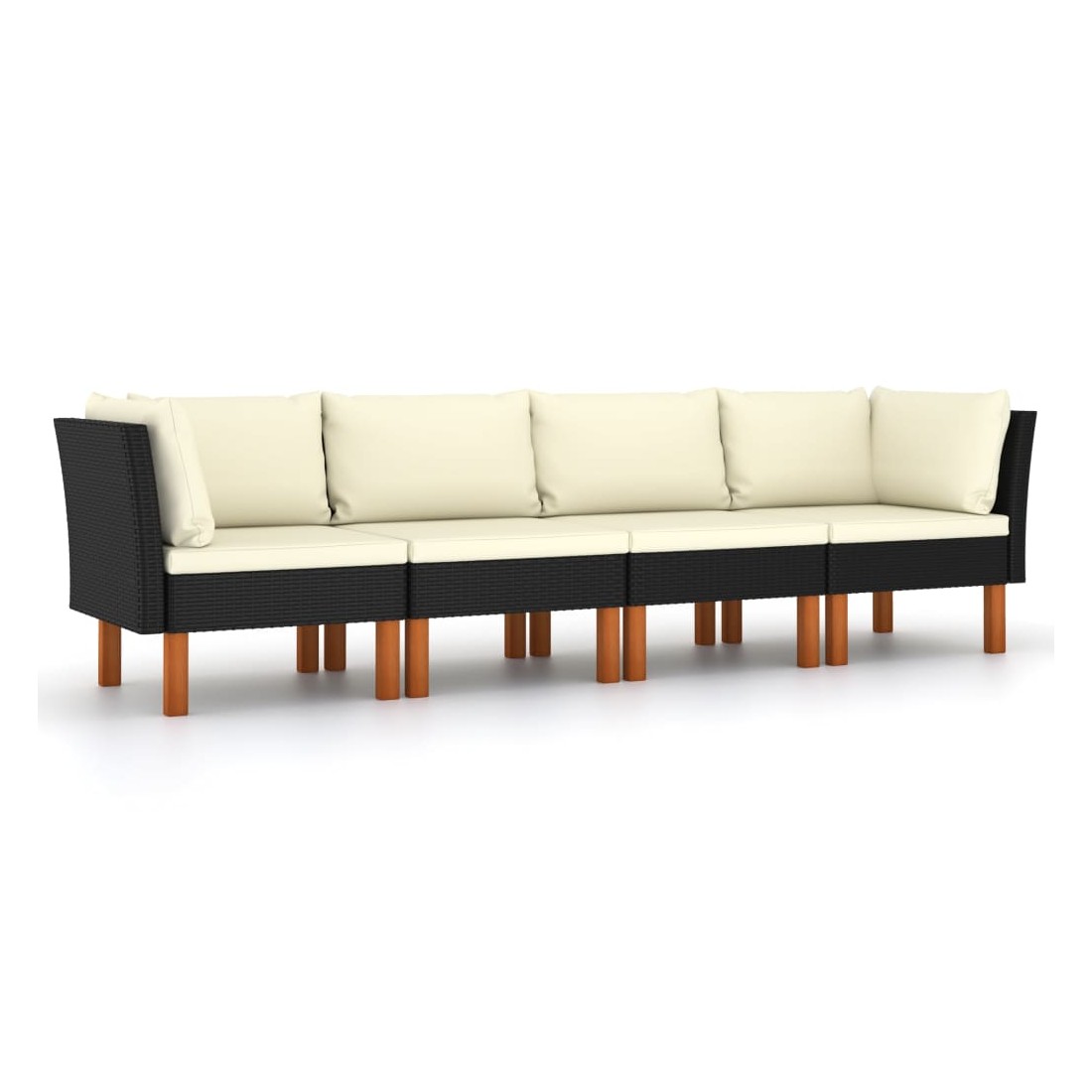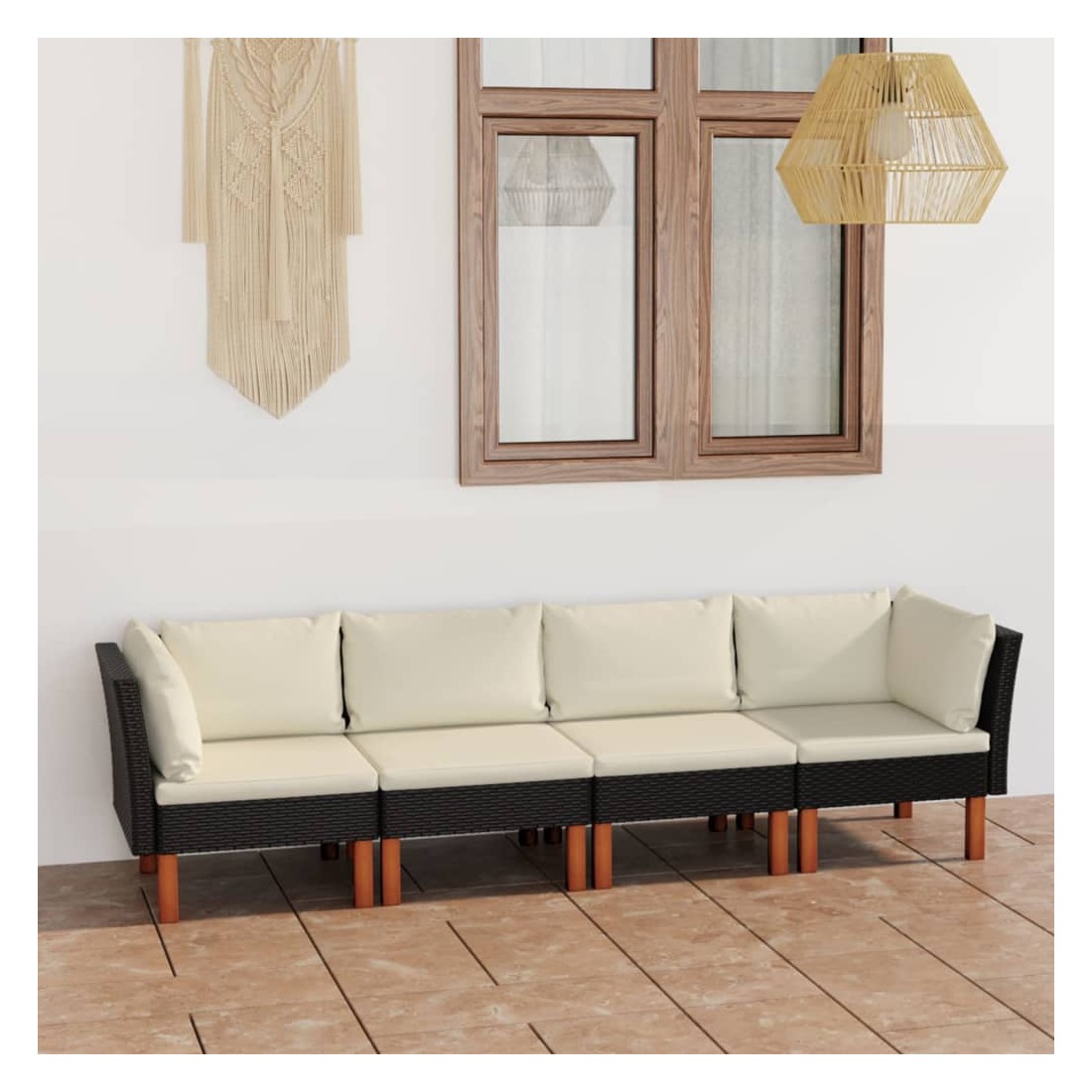 Canapé de jardin à 4 places avec coussins Noir Résine tressée