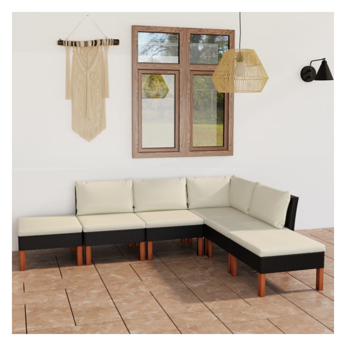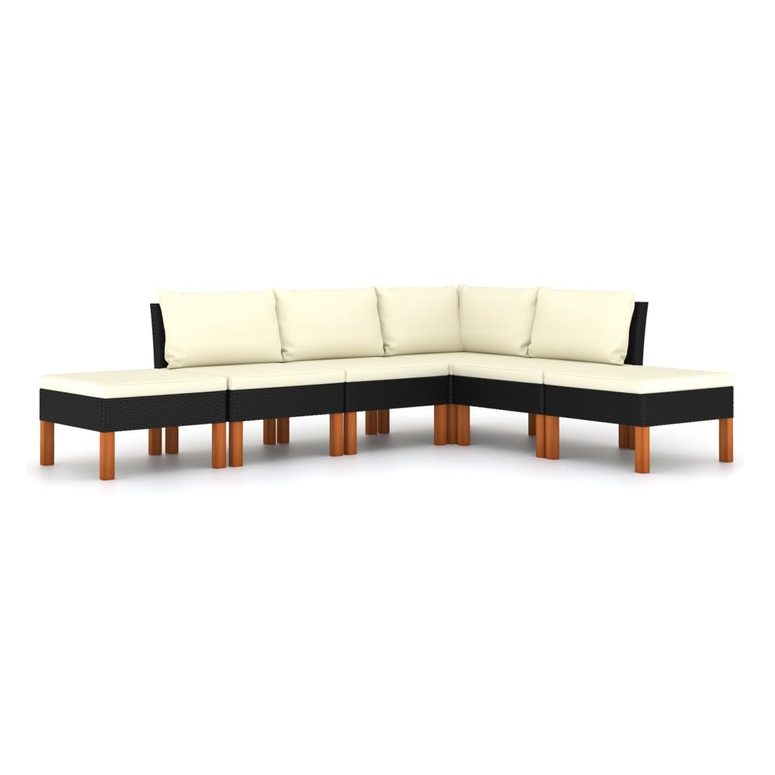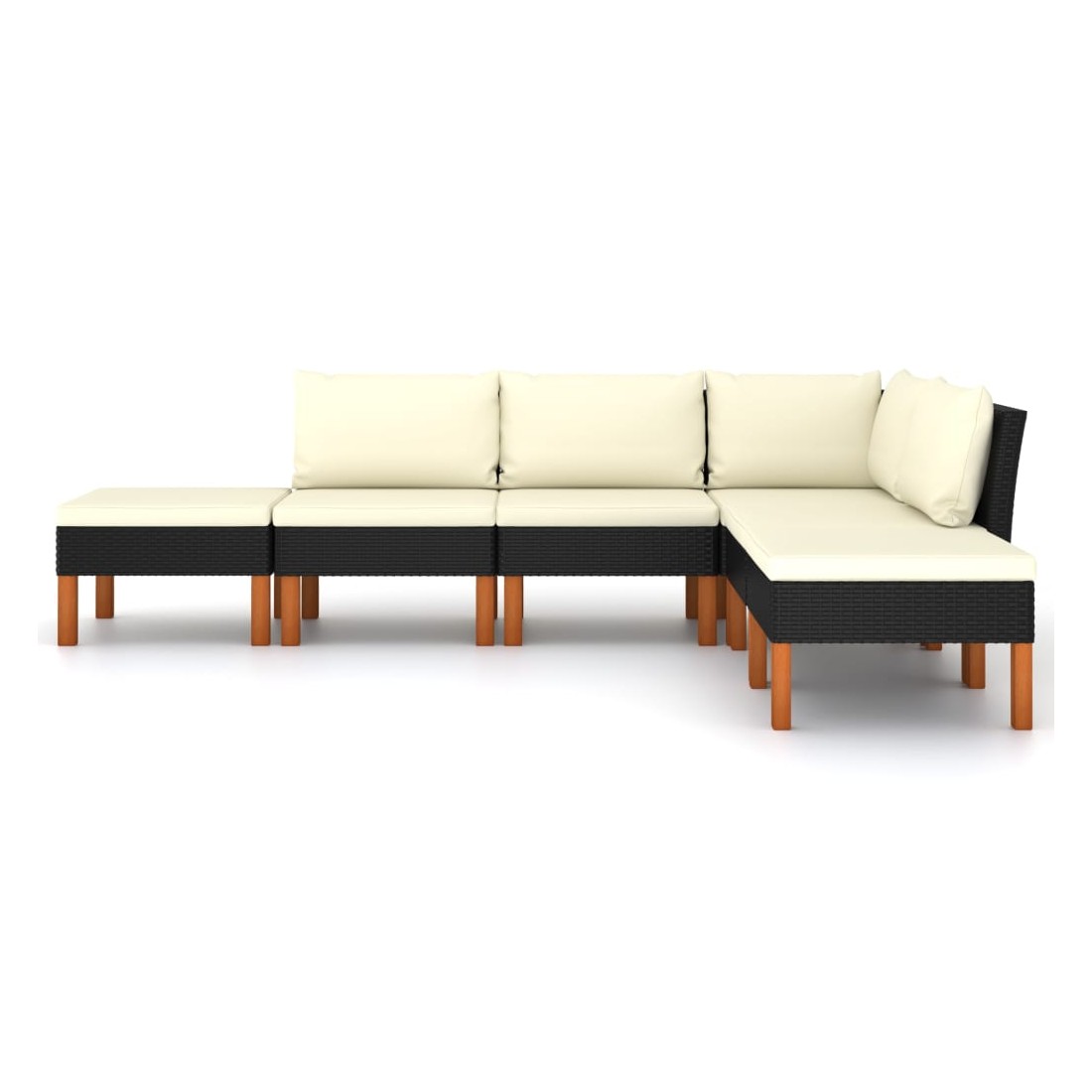 Salon de jardin 6 pcs avec coussins Résine tressée Noir