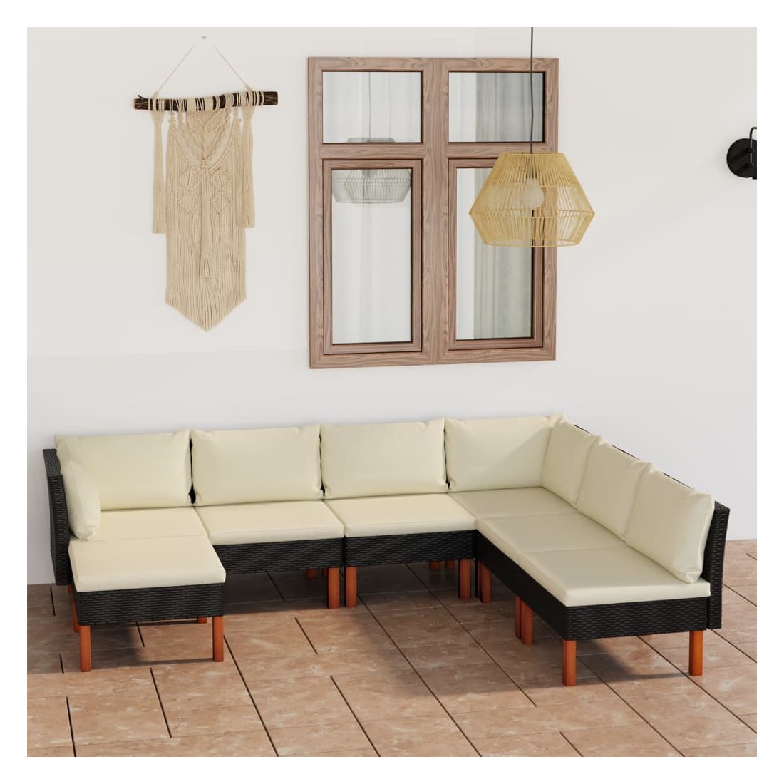Cet ensemble de salon de jardin élégant et confortable, est un choix idéal pour vous détendre et profiter du beau temps, faire une sieste ou discuter avec votre famille ou vos amis. Doté d’un cadre en acier enduit de poudre recouvert de résine tressée, l'ensemble de canapé est résistant aux intempéries et facile à nettoyer. Les pieds en bois d’eucalyptus massif contribuent à sa robustesse et à sa stabilité. L'ensemble de salon est livré avec des coussins rembourrés pour un confort suprême. Dotée d'une fermeture éclair, la housse des coussins est amovible et lavable. De plus, cet ensemble de canapés d'extérieur peut être facilement déplacé pour s’adapter à n’importe quelle configuration grâce à sa construction légère. Remarque : afin de prolonger la durée de vie des meubles d'extérieur, nous vous recommandons de les protéger avec une housse imperméable.
