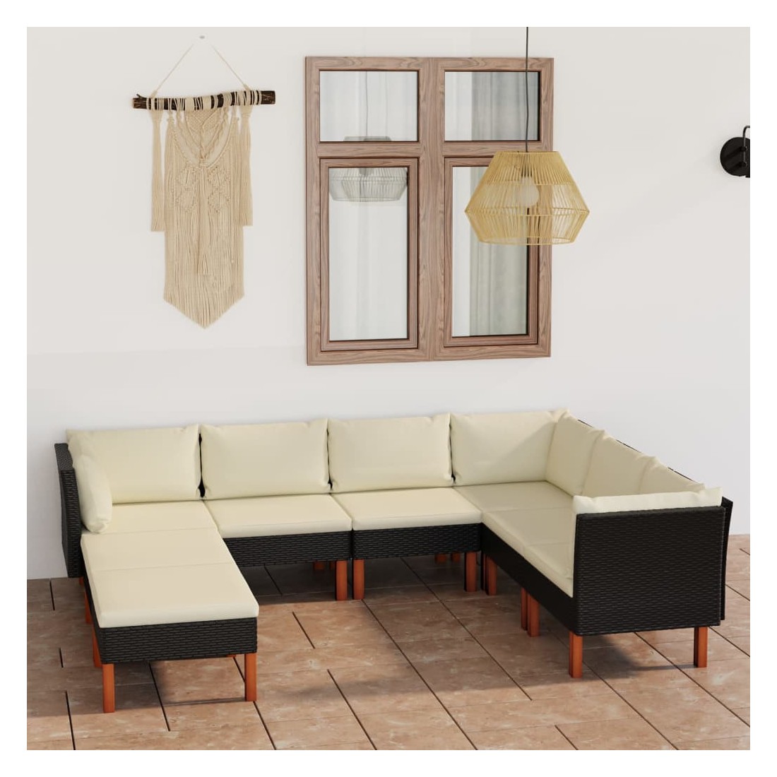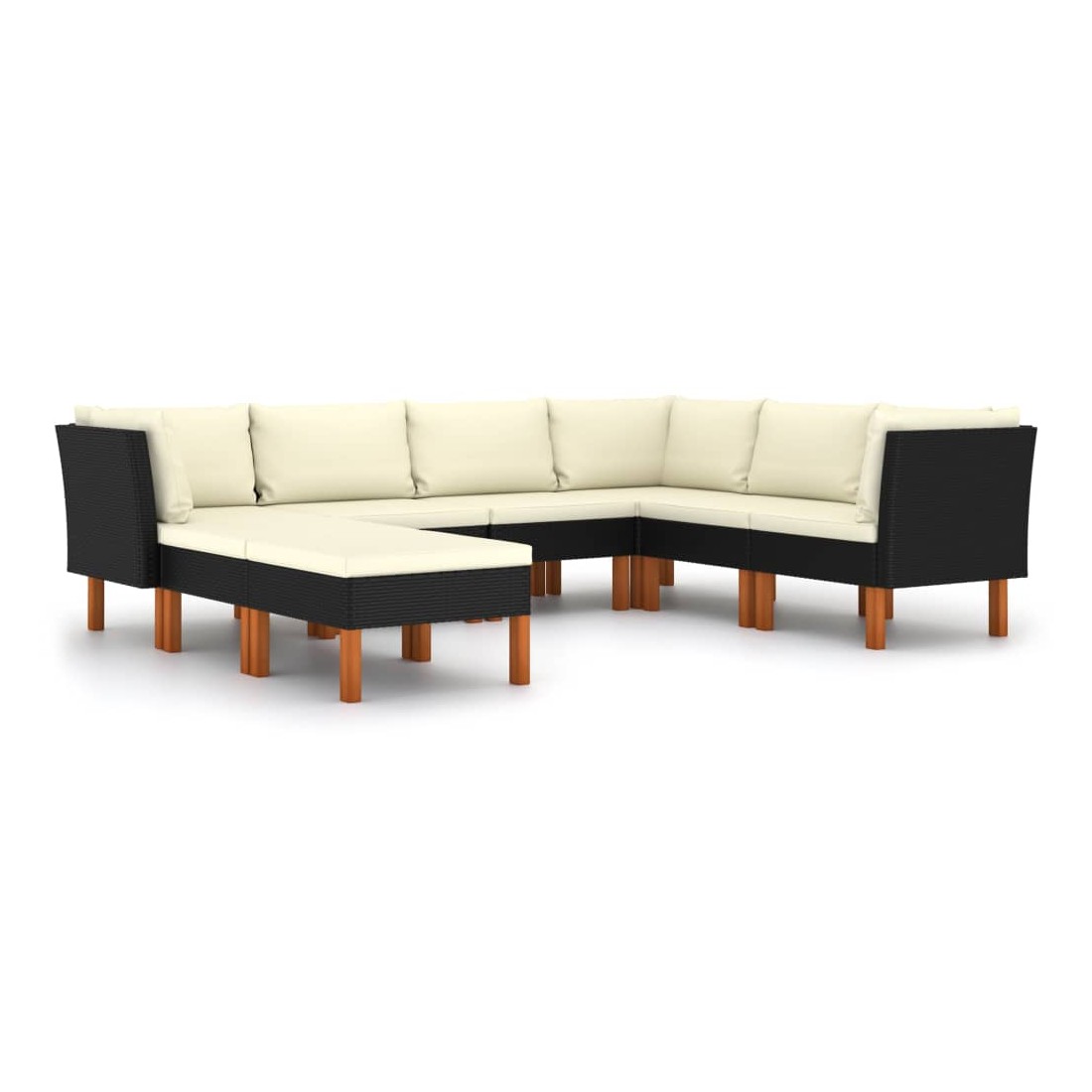 Salon de jardin 8 pcs avec coussins Résine tressée Noir