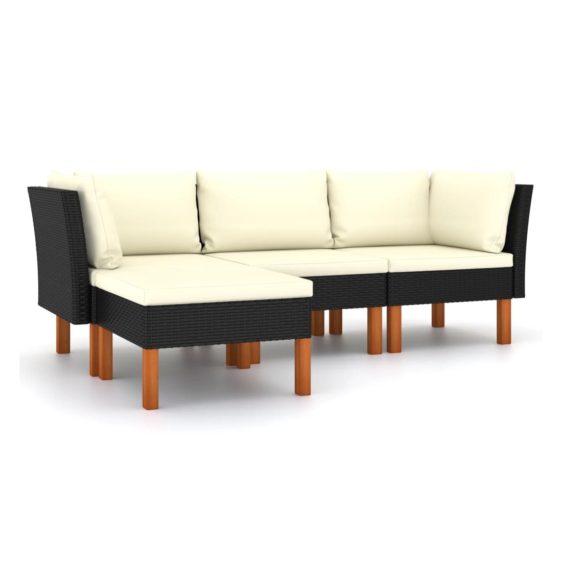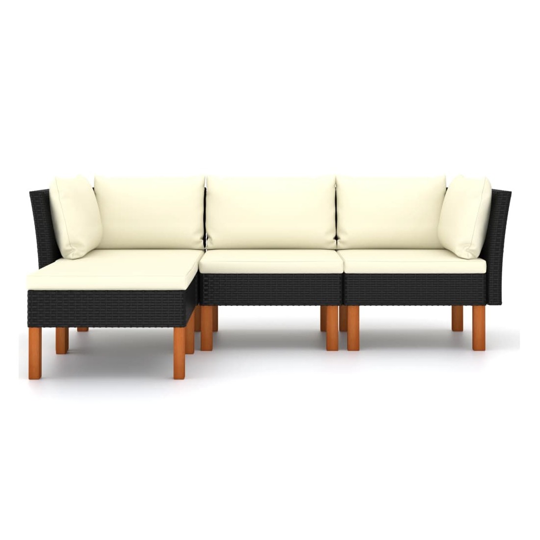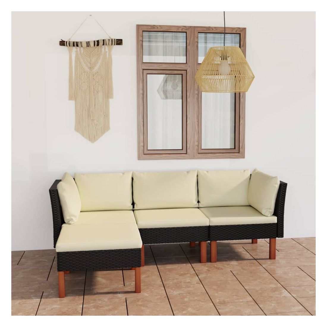 Cet ensemble de salon de jardin élégant et confortable, est un choix idéal pour vous détendre et profiter du beau temps, faire une sieste ou discuter avec votre famille ou vos amis. Doté d’un cadre en acier enduit de poudre recouvert de résine tressée, l'ensemble de canapé est résistant aux intempéries et facile à nettoyer. Les pieds en bois d’eucalyptus massif contribuent à sa robustesse et à sa stabilité. L'ensemble de salon est livré avec des coussins rembourrés pour un confort suprême. Dotée d'une fermeture éclair, la housse des coussins est amovible et lavable. De plus, cet ensemble de canapés d'extérieur peut être facilement déplacé pour s’adapter à n’importe quelle configuration grâce à sa construction légère. Remarque : afin de prolonger la durée de vie des meubles d'extérieur, nous vous recommandons de les protéger avec une housse imperméable.