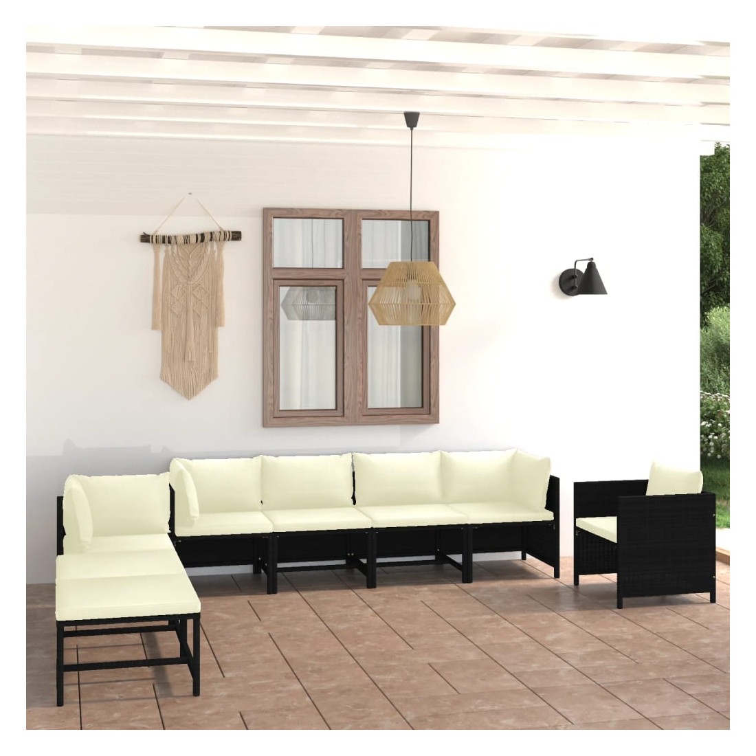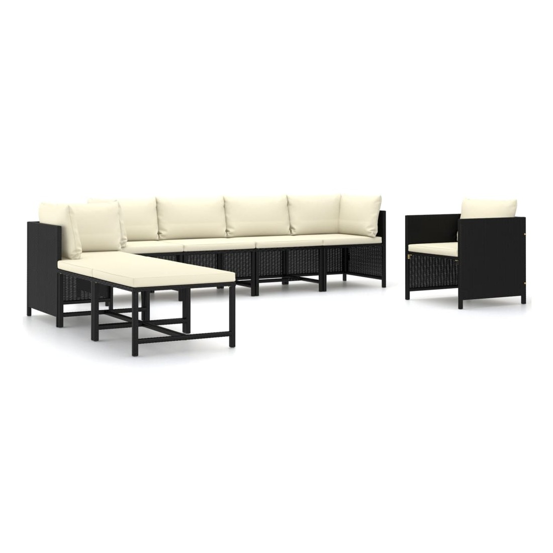 Salon de jardin 8 pcs avec coussins Résine tressée Noir