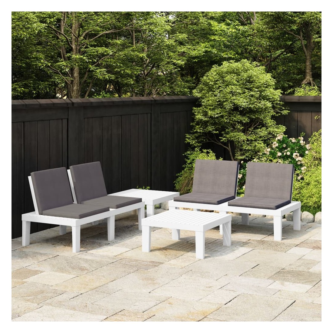 Ce salon de jardin est un excellent choix pour vous détendre et profiter du beau temps, faire une sieste ou discuter avec votre famille ou vos amis. L’ensemble de salon de jardin est en plastique, ce qui le rend facile à nettoyer et stable. Avec son dessus robuste, la table est idéale pour garder la nourriture et les boissons à portée de main. Le dossier et les coussins ajoutent au confort du banc.