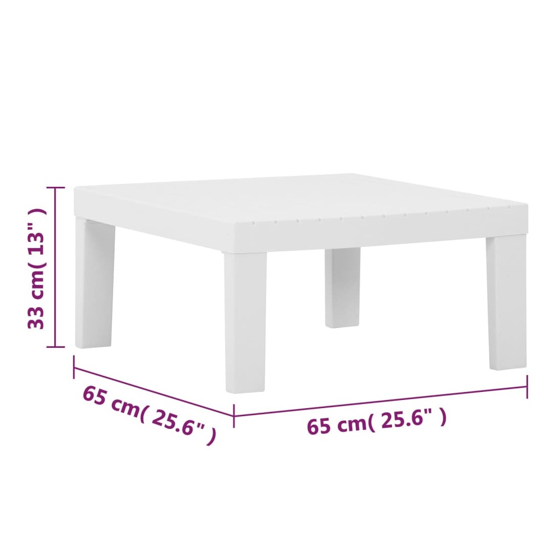 - Dimensions de la table : 65 x 65 x 33 cm (l x P x H)