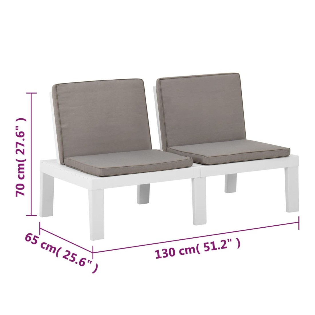 - Dimensions du banc : 130 x 65 x 70 cm (l x P x H)