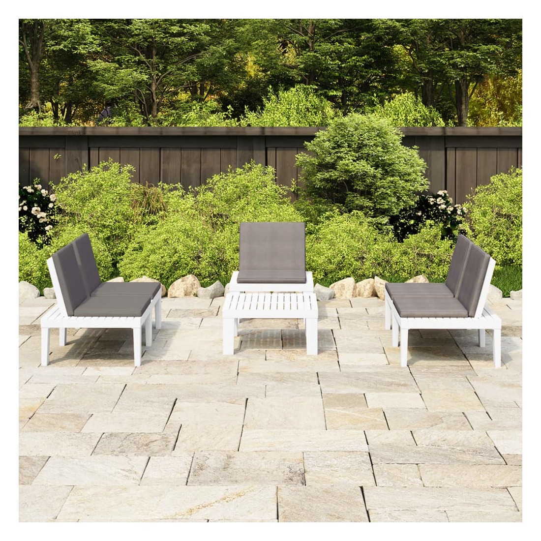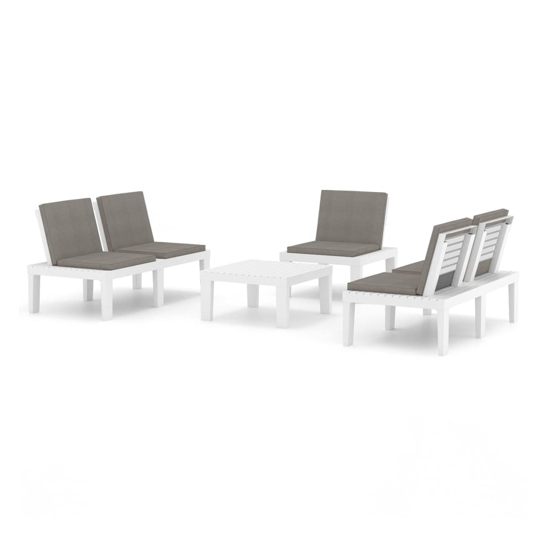 Ce salon de jardin est un excellent choix pour vous détendre et profiter du beau temps, faire une sieste ou discuter avec votre famille ou vos amis. L’ensemble de salon de jardin est en plastique, ce qui le rend facile à nettoyer et stable. Avec son dessus robuste, la table est idéale pour garder la nourriture et les boissons à portée de main. Le dossier et les coussins ajoutent au confort des sièges d'extérieur.