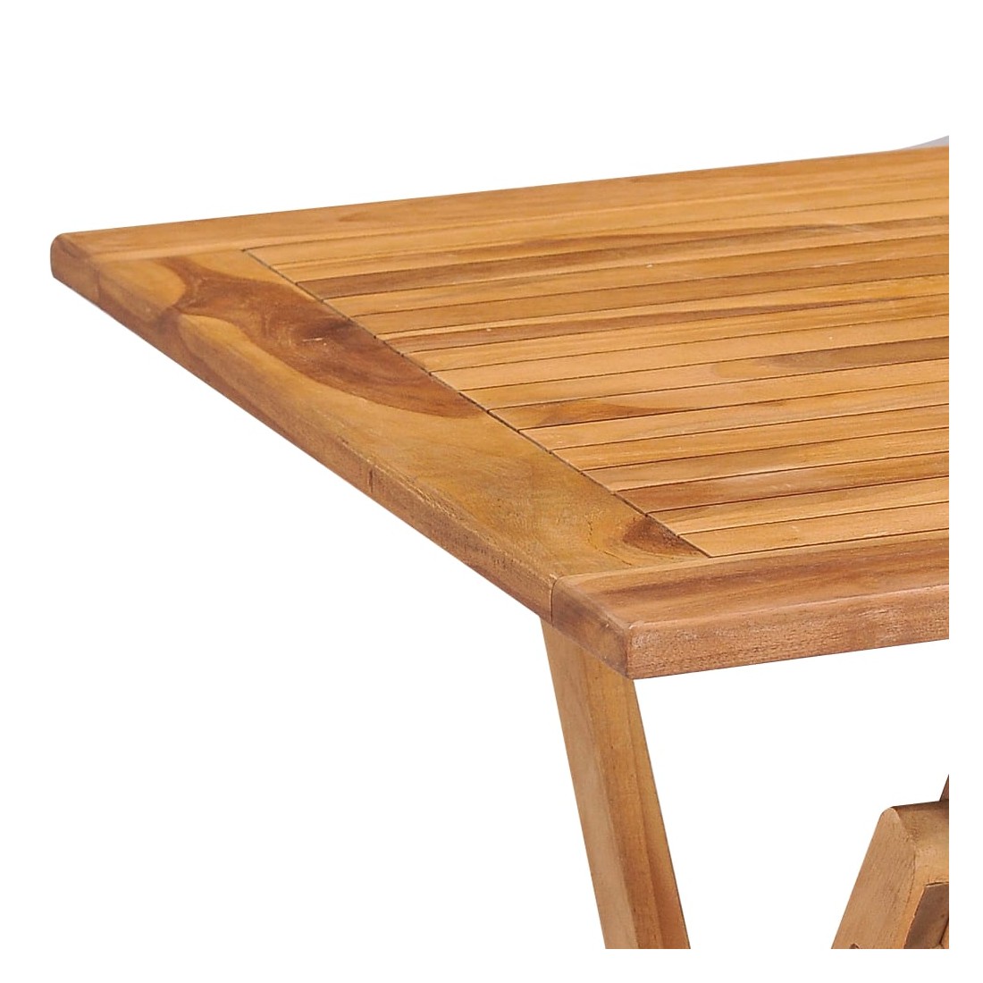 Cet élégant ensemble de salle à manger en bois de teck massif est conçu pour être le point de mire de votre jardin, terrasse ou patio. Cette pièce de meubles, construite en bois dur de teck extrêmement durable, est chevronnée, séchée au four et poncée finement pour lui donner un aspect très lisse. Le bois de teck est connu pour sa résistance exceptionnelle aux intempéries, ce qui le rend beaucoup plus adapté aux meubles de jardin que tout autre type de bois. Le bois de teck est le choix parfait si vous souhaitez acheter un meuble de jardin durable. La table et les chaises peuvent être pliées pour économiser de l’espace lorsqu'elles ne sont pas utilisées.