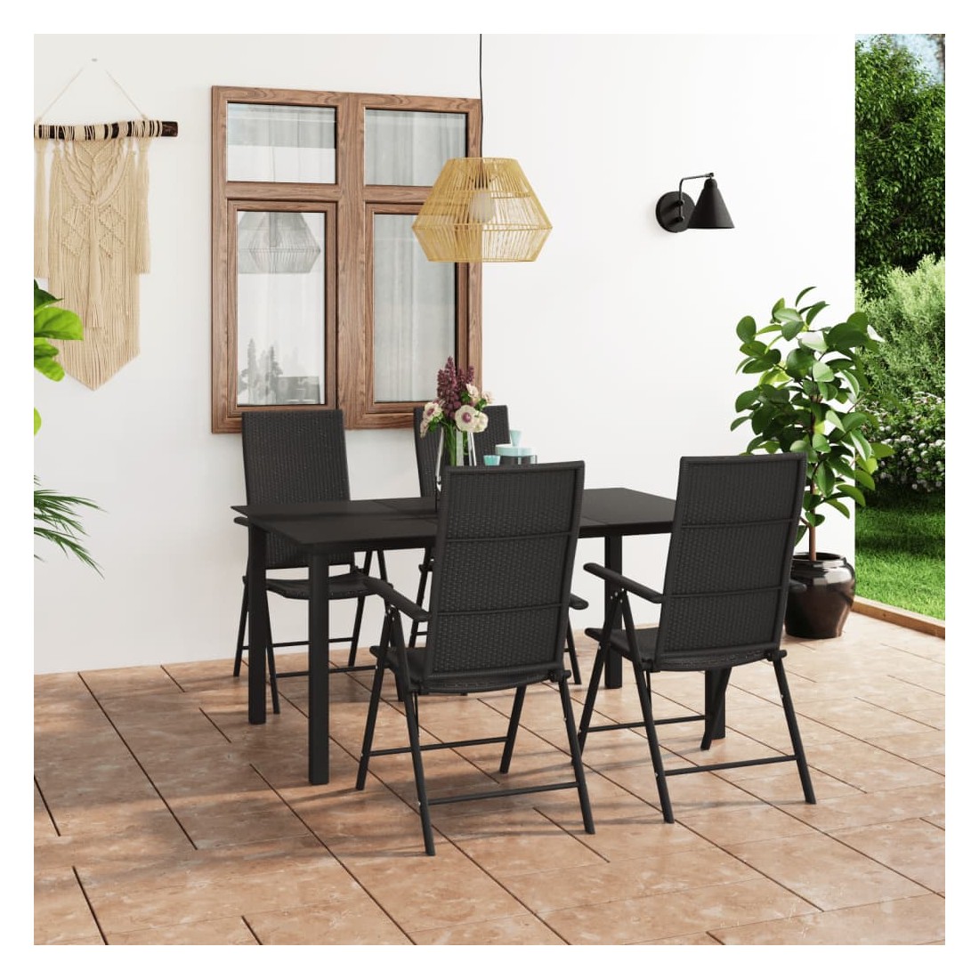 Cet ensemble à manger de jardin est un excellent choix pour votre jardin, patio ou terrasse. La chaise de jardin est en résine tressée, ce qui la rend résistante aux intempéries et durable. La table dispose d'un dessus de table en verre avec une ligne simple, facile à nettoyer et adapté à une utilisation en plein air. Les cadres en aluminium assurent également la stabilité et la robustesse de cet ensemble. Grâce à sa construction légère, cet ensemble de meubles et facile à déplacer. Remarque : nous vous recommandons de couvrir le mobilier pendant la pluie, la neige ou le gel.