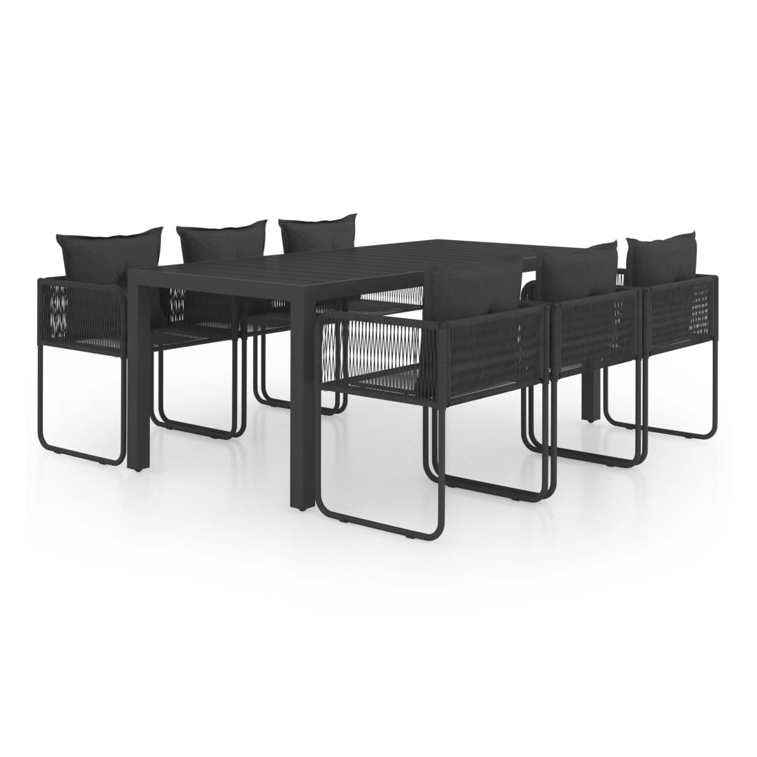 Ensemble à manger de jardin 7 pcs PVC résine tressée noir