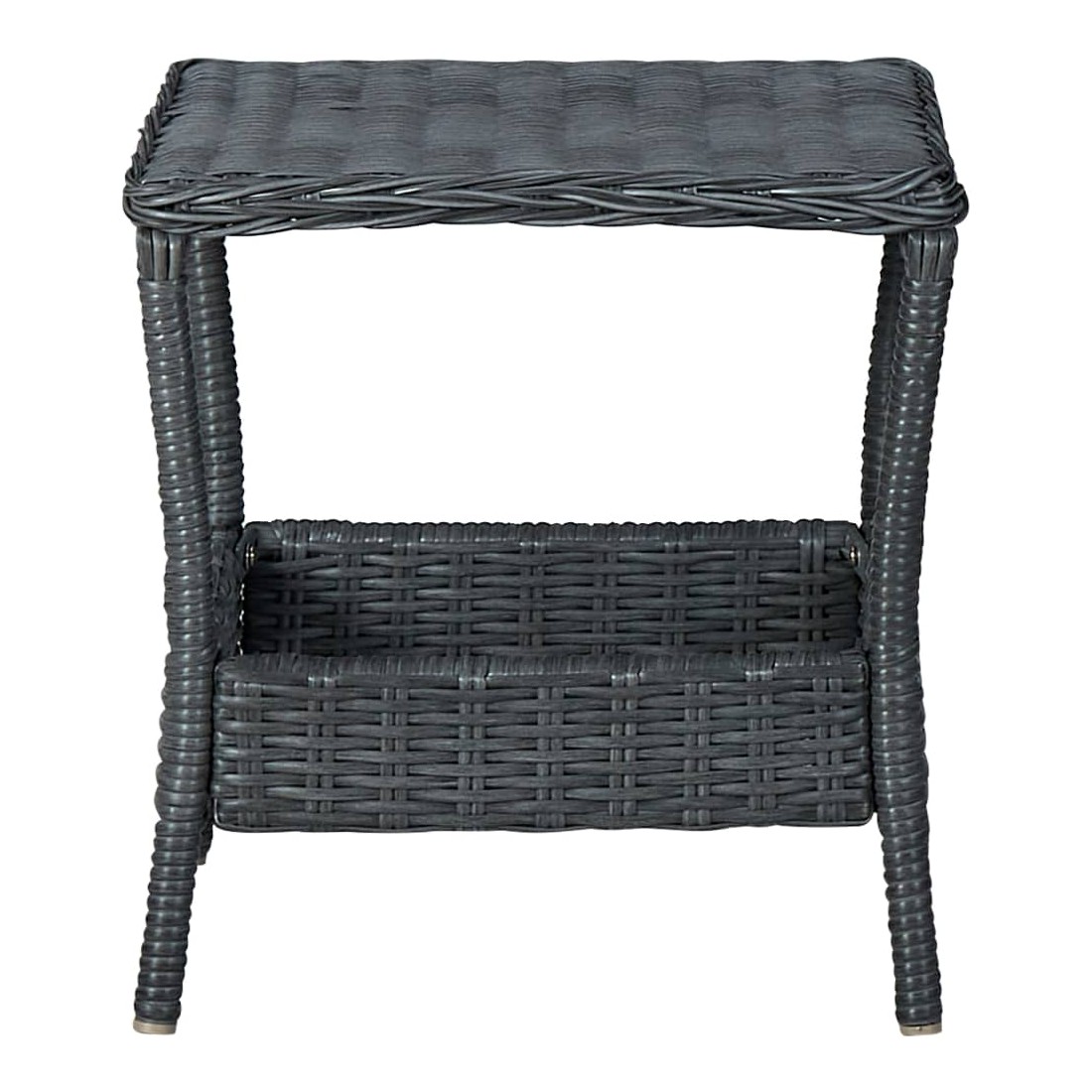 - Matériau : résine tressée ronde, acier enduit de poudre, panneau PP