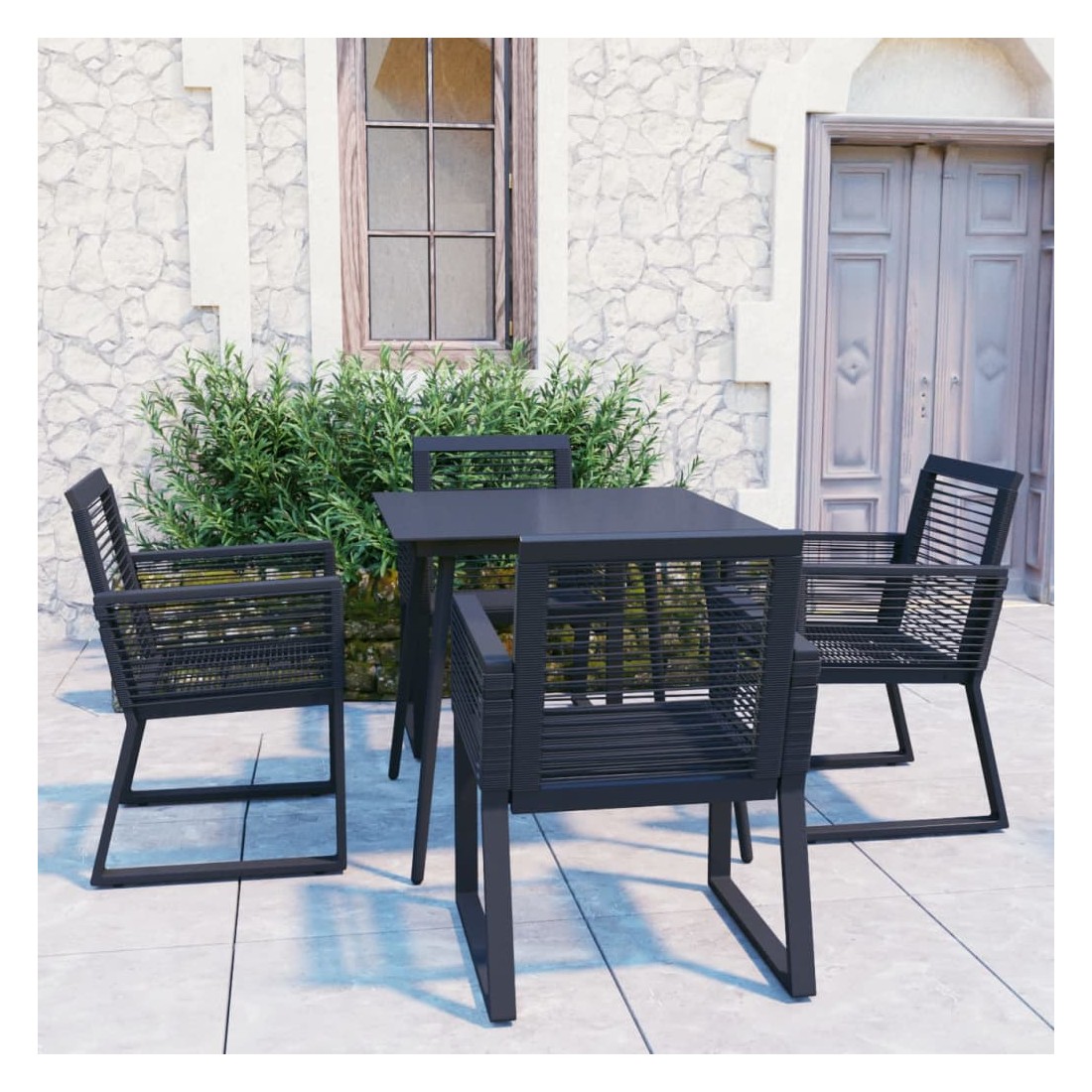 Ensemble à manger d'extérieur 5 pcs Rotin PVC Noir