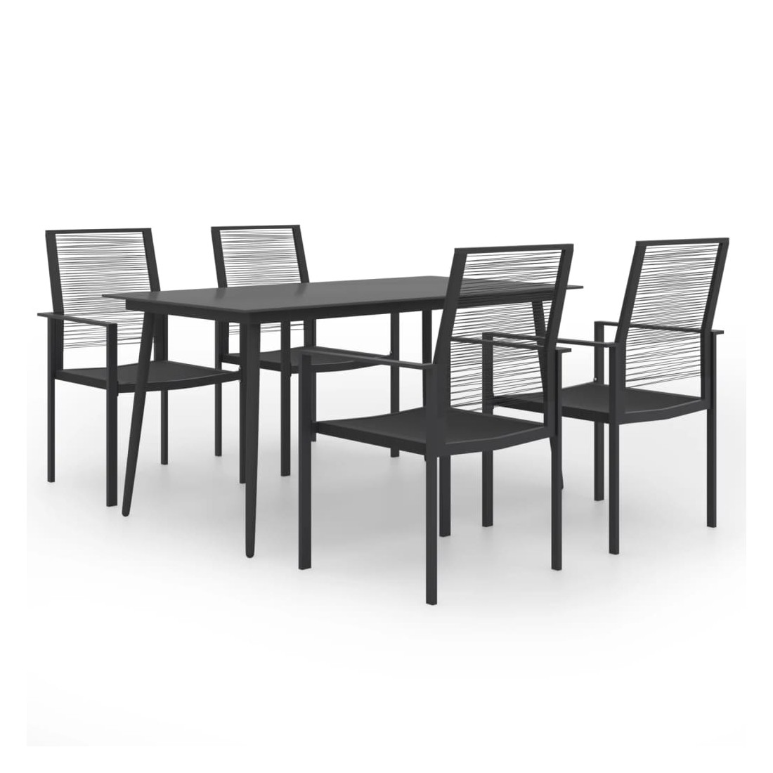 Créez une esthétique convaincante et uniforme dans votre espace extérieur avec cet ensemble de salle à manger de jardin ! La table et les chaises sont dotées de cadres en acier enduit de poudre, ce qui les rend robustes et stables. Le dessus de table en verre le rend également facile à nettoyer et résistant aux intempéries. Cette table d’extérieur est stable, durable et résistante à la rouille. Grâce au rotin creux en PVC résistant à l’eau, les chaises de jardin sont robustes, faciles à entretenir et adaptées à une utilisation quotidienne en extérieur. De plus, le dossier ajoute également un confort d’assise supplémentaire à la chaise. Remarque : afin de prolonger la durée de vie des meubles d'extérieur, nous vous recommandons de les protéger avec une housse imperméable.