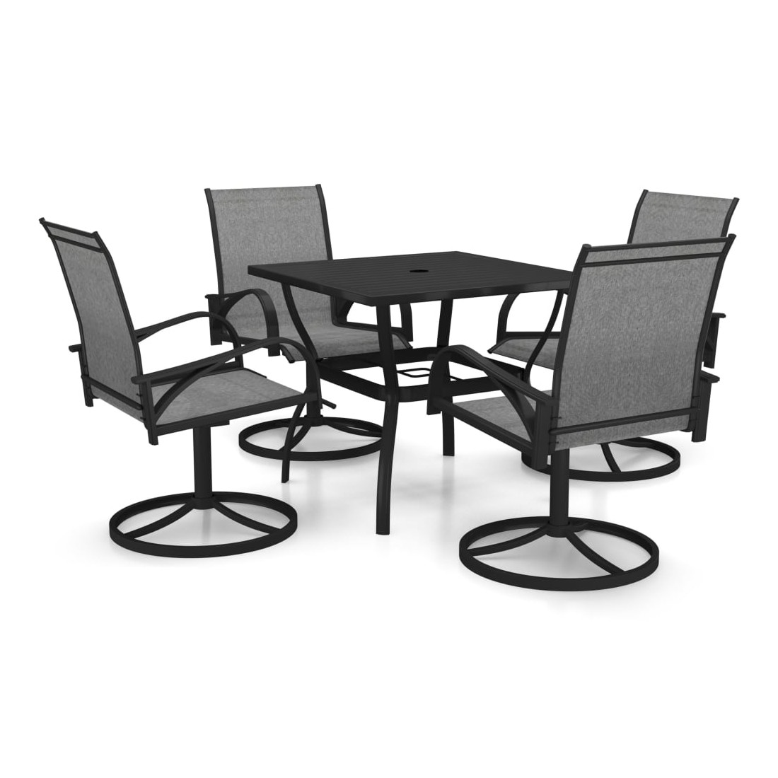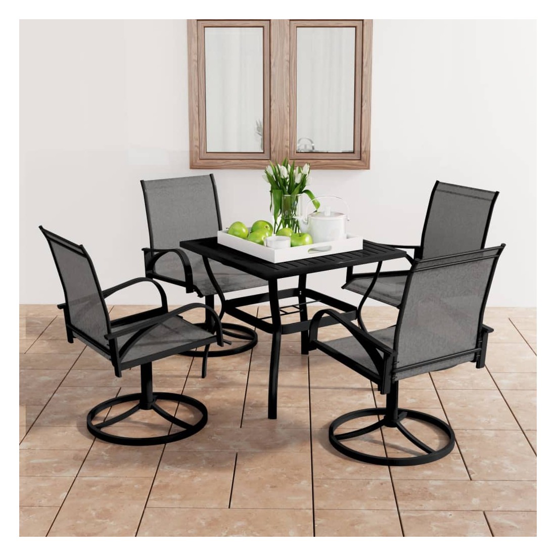 Créez une esthétique convaincante et uniforme dans votre espace extérieur avec cet ensemble de salle à manger de jardin ! Cette table et cette chaise d'extérieur sont fabriquées en acier enduit de poudre, ce qui les rend robustes et stables. Les sièges et LES dossiers des chaises en tissu textilène respirant sont bien ventilés et sèchent rapidement. La base ronde pivotant à 360 degrés, le support ergonomique du dossier et les accoudoirs incurvés vous offrent une meilleure expérience d'utilisation et un confort de salon.