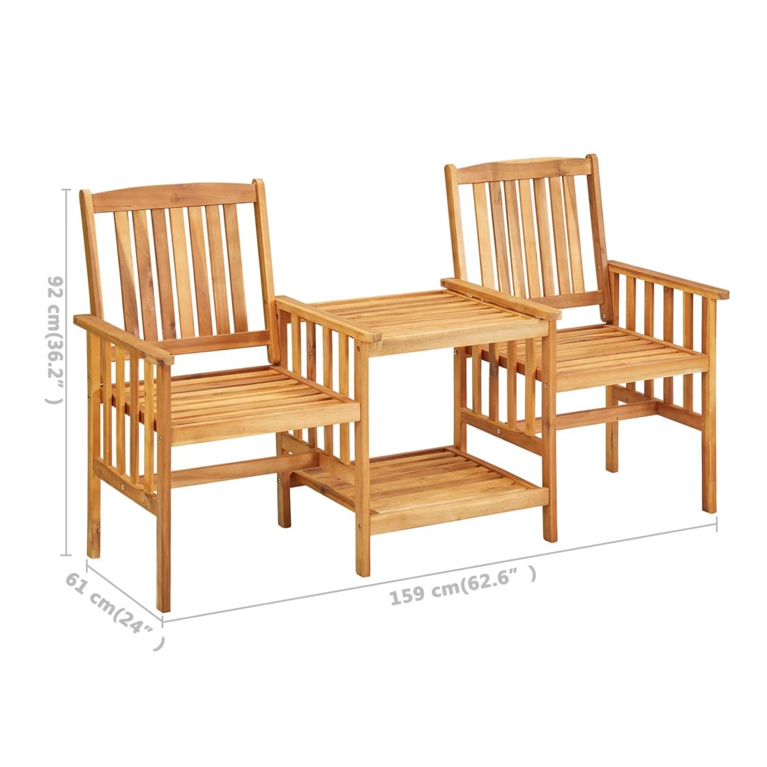Chaises de jardin avec table à thé et coussins Acacia solide