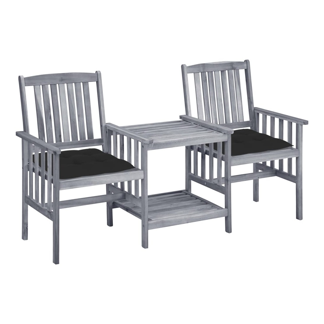 Chaises de jardin avec table à thé et coussins Acacia solide