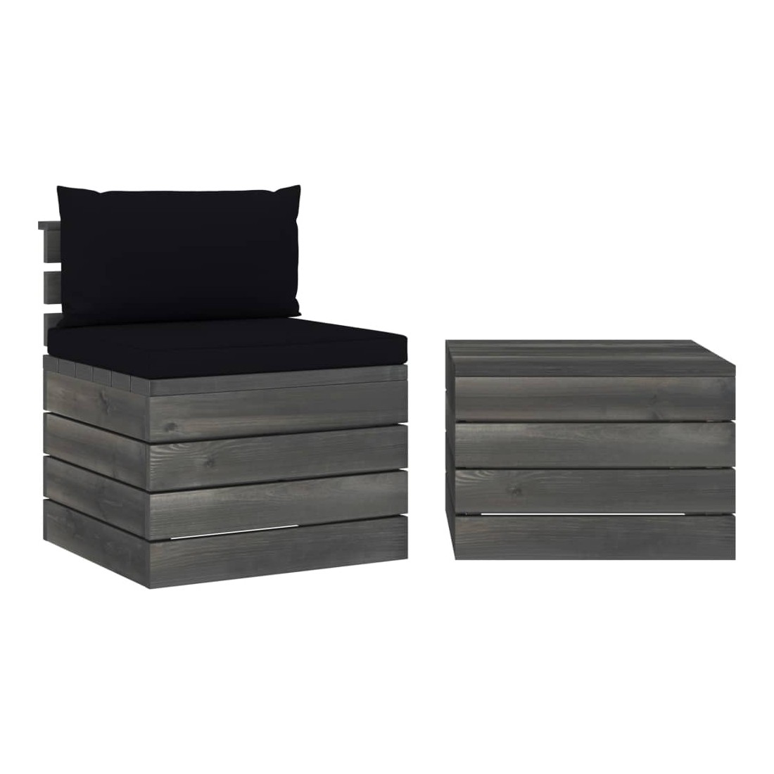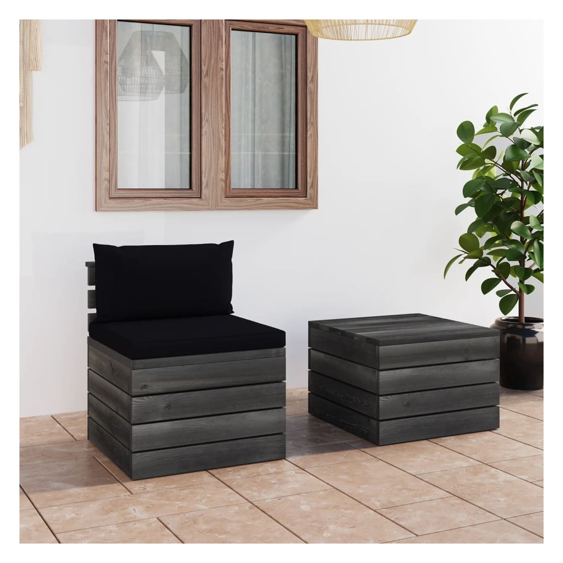 Salon palette de jardin 2 pcs avec coussins Bois de pin massif