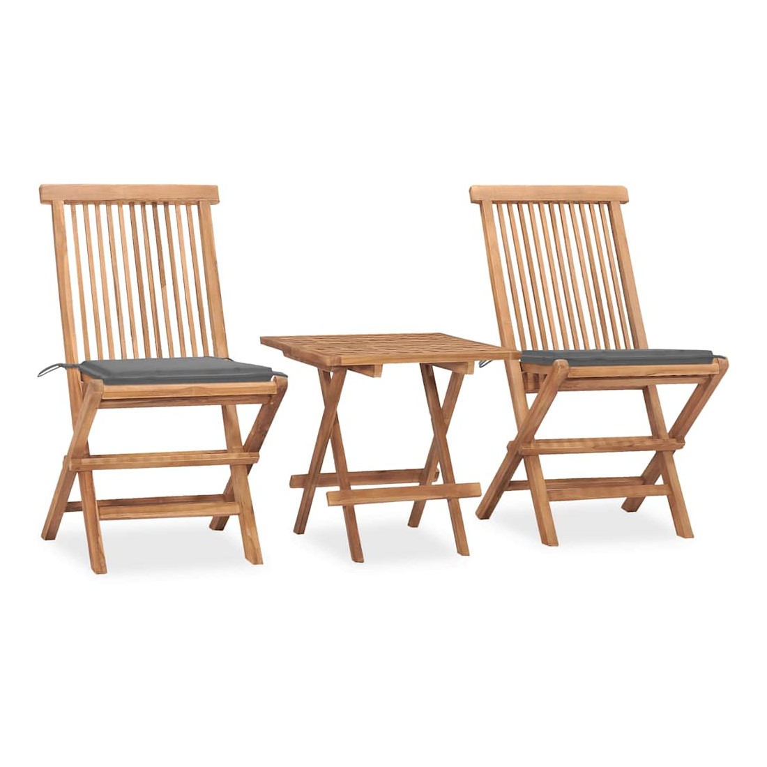 Ensemble à manger d'extérieur pliable avec coussin 3 pcs Teck