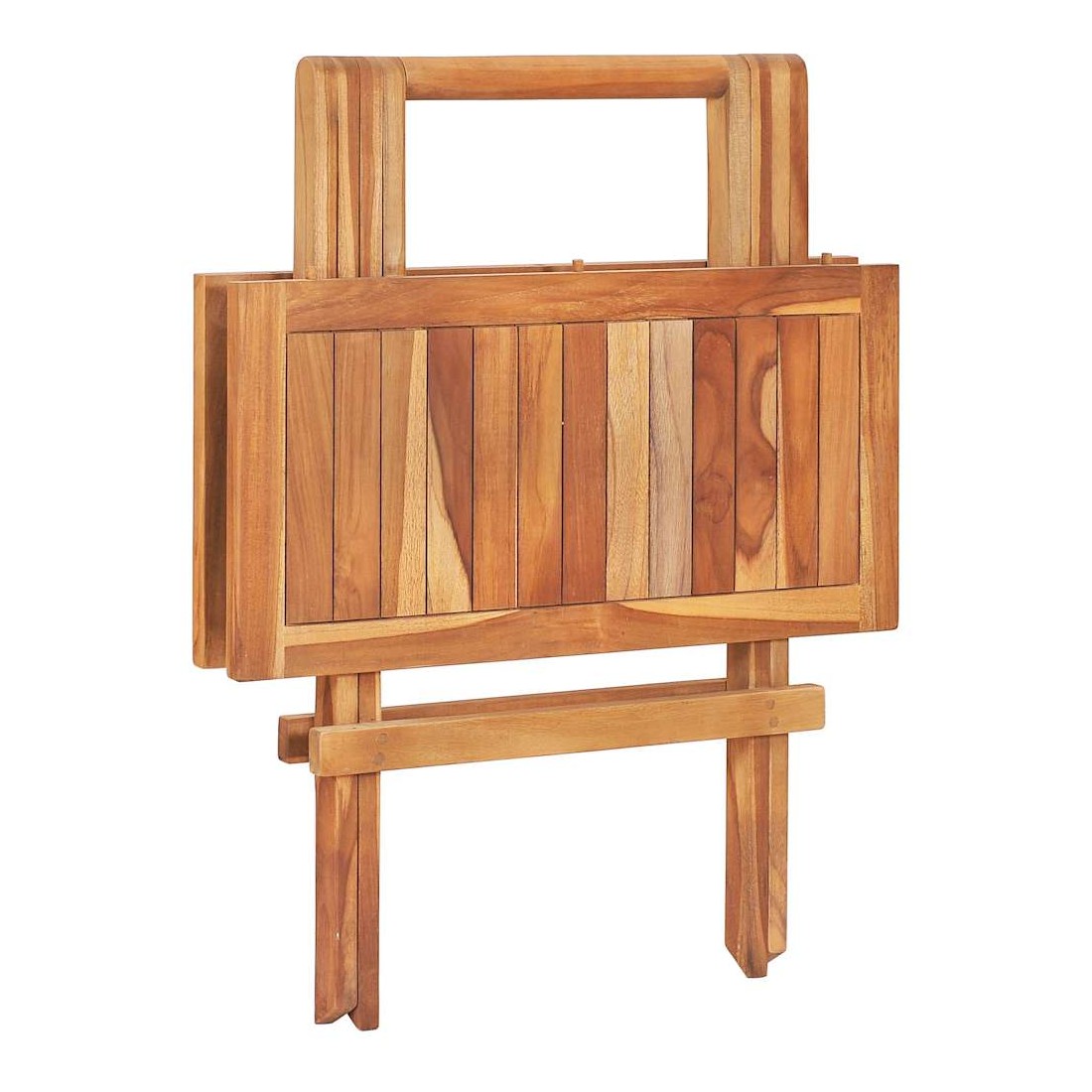Cet ensemble de bistro en bois fait le point de mire de votre jardin, terrasse, patio ou salle à manger. Fabriquée en bois dur de teck extrêmement durable, cette pièce de meuble en teck a été chevronnée, séchée au four puis finement poncée pour lui donner un aspect très lisse. Le bois de teck est connu pour sa résistance exceptionnelle aux intempéries, ce qui le rend bien plus adapté aux meubles de jardin que tout autre type de bois. Le bois de teck est le choix idéal si vous souhaitez acheter un meuble de jardin durable. La surface sablée est facile à entretenir et donne à l’ensemble un aspect raffiné. La table de bistro et les chaises peuvent être pliées pour économiser de l’espace lorsqu'elles ne sont pas utilisées. Les coussins de siège inclus ajoutent également un confort supplémentaire.