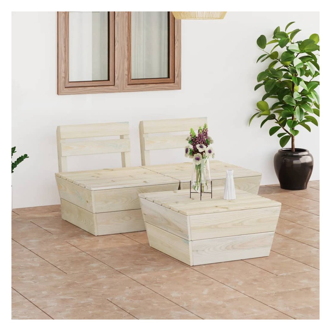 Salon de jardin palette 3 pcs Bois d'épicéa imprégné