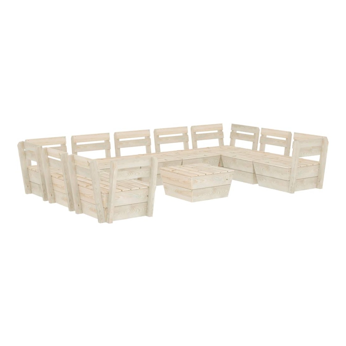 Cet ensemble de salon de jardin palette de 10 pièces est un excellent choix pour vous détendre et profiter du beau temps, faire une sieste ou discuter avec votre famille ou vos amis. L’ensemble de salon en bois, avec un design de palette intemporel, ajoute une touche de charme rustique à votre patio, jardin ou salon. L'ensemble de salon de jardin est fait de bois d'épicéa imprégné, ce qui le rend durable et stable. Cet ensemble de canapé de patio est de construction solide et nécessite peu d'entretien. De plus, la conception modulaire permet également de placer l'ensemble dans n'importe quel arrangement selon votre goût. Veuillez noter que le bois est un produit naturel et peut présenter des imperfections.