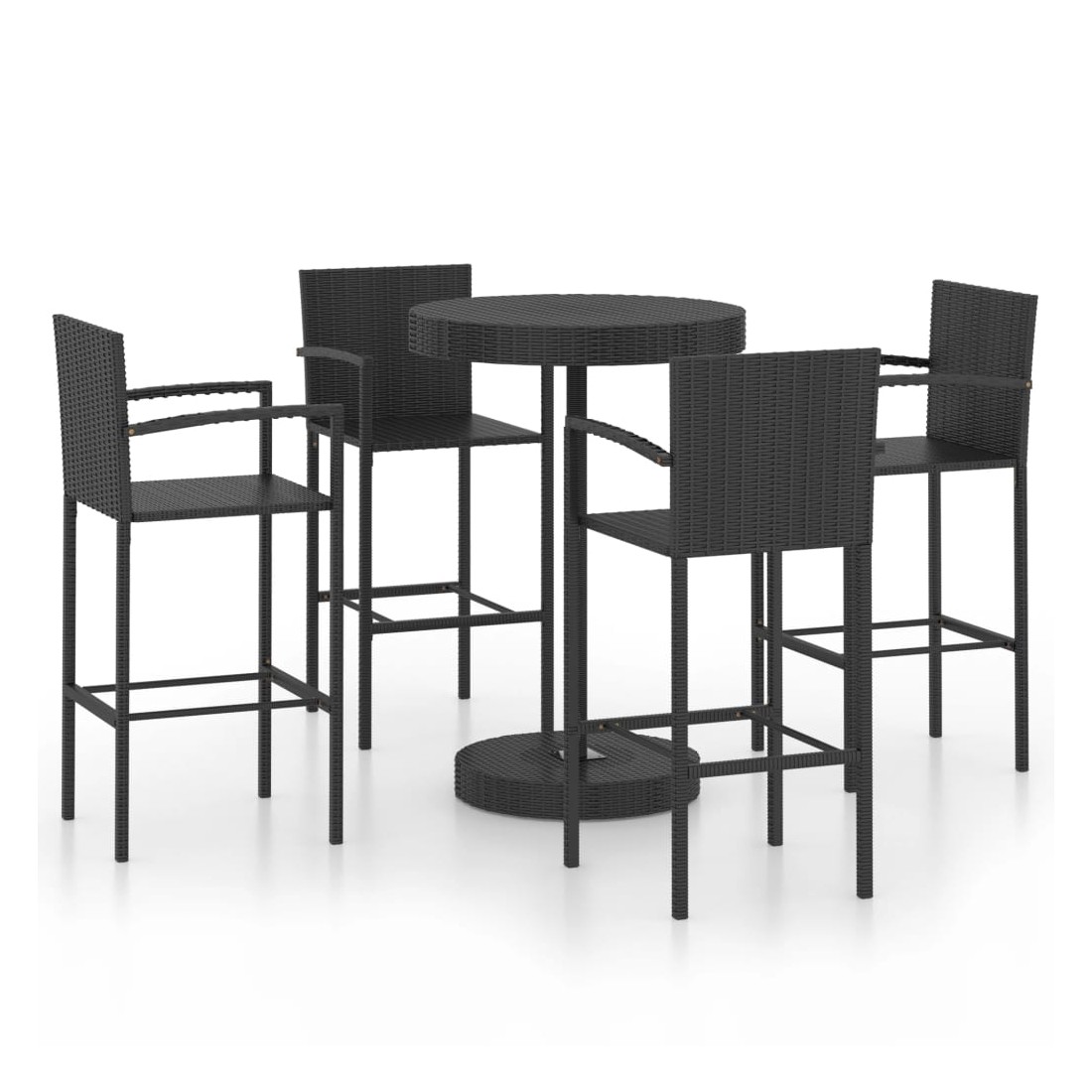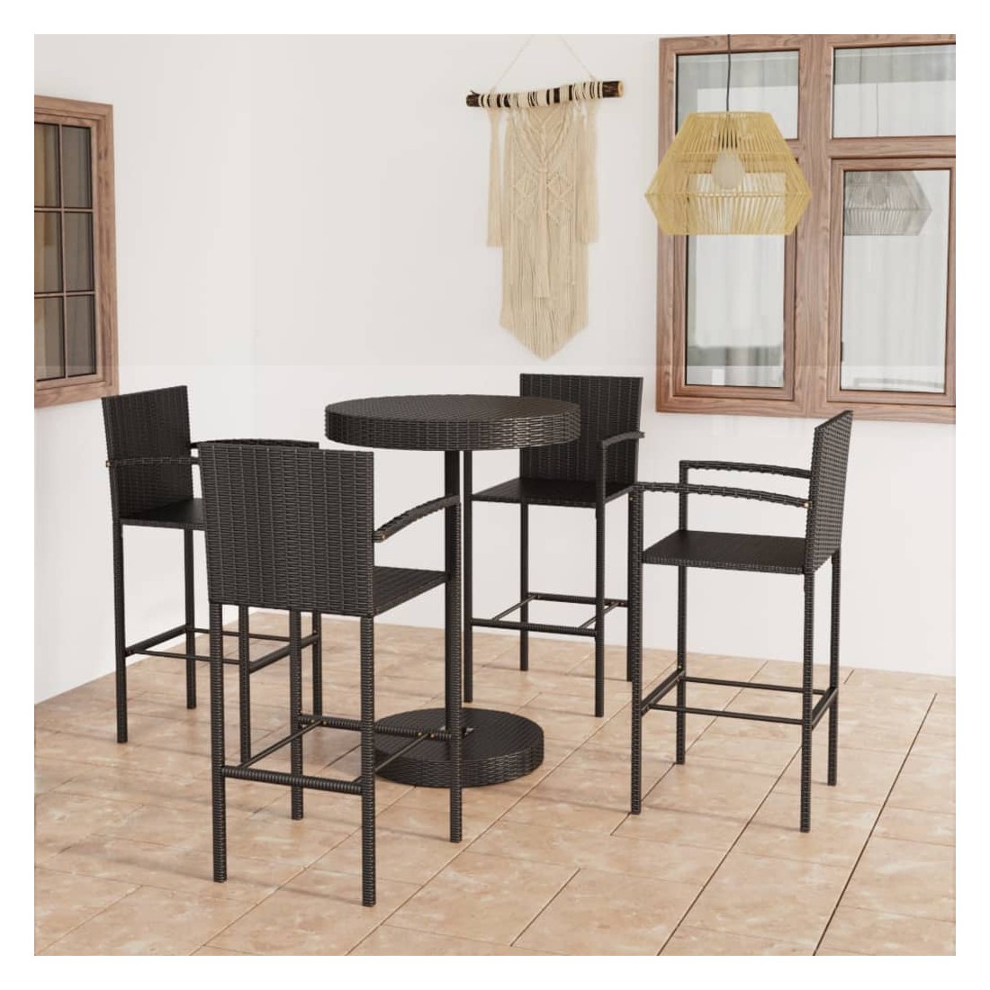 Cet ensemble élégant de bar de jardin vous permet de passer des moments agréables et confortables avec votre famille et vos amis. La table de bar est soutenue par un cadre en acier enduit de poudre, ce qui la rend stable et robuste. Le dessus de table rond est idéal pour placer des boissons, de la nourriture ou des objets décoratifs. Les tabourets ont une construction solide de cadre en acier et sont faits de résine tressée résistante aux intempéries, assurant la stabilité et sont faciles à déplacer. Le repose-pied ajoute également au confort d'assise du tabouret.
