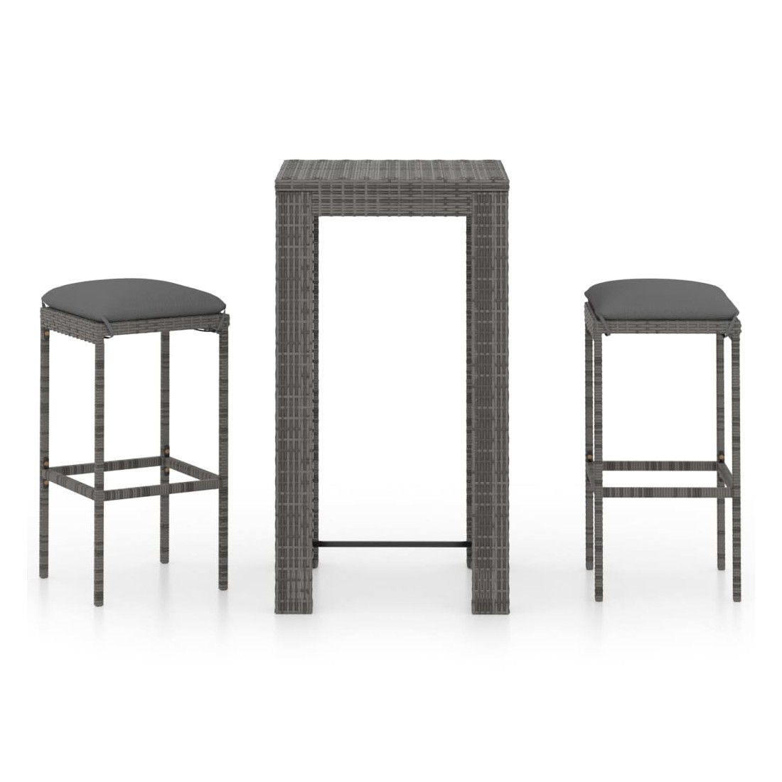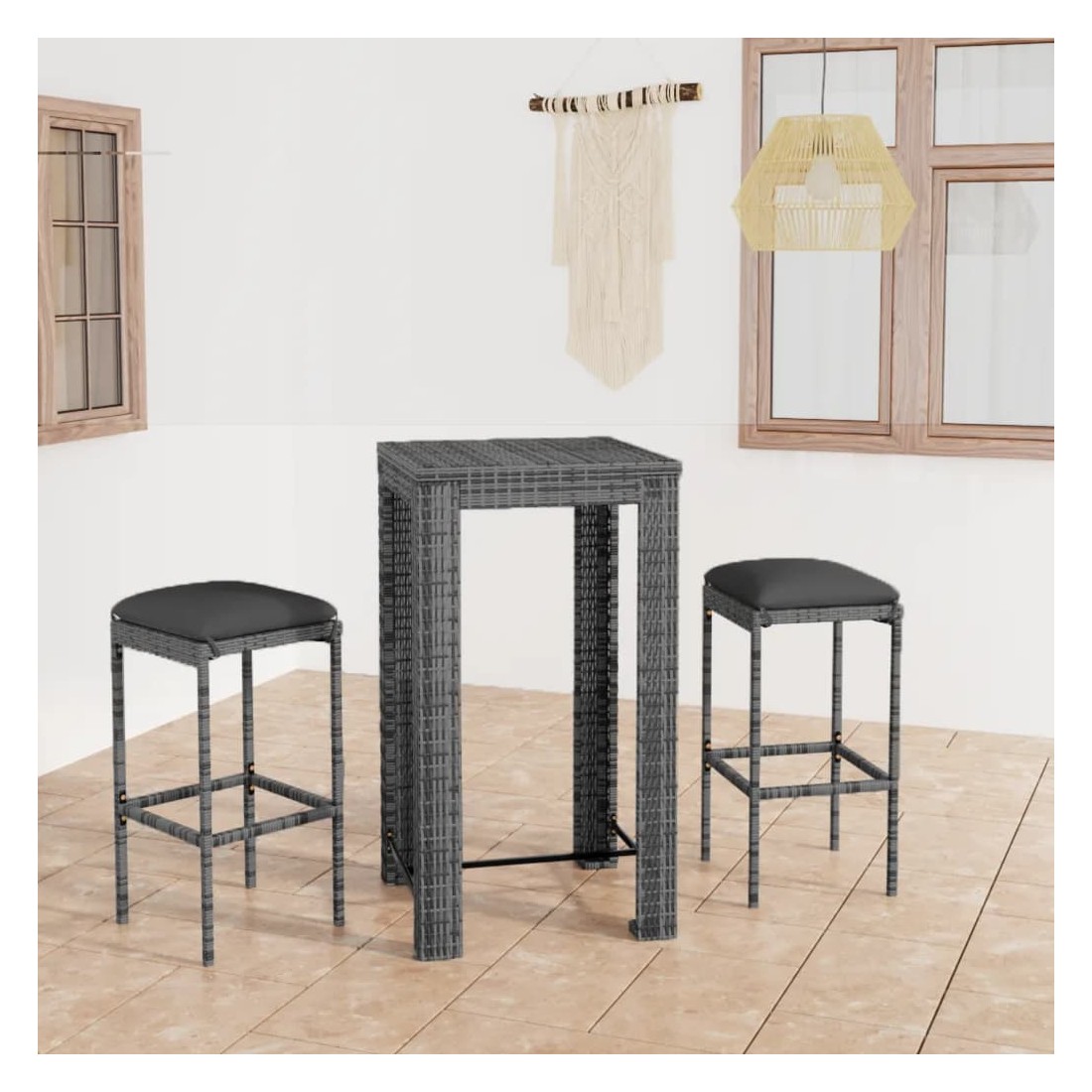 Ensemble de bar de jardin 3 pcs et coussins Résine tressée Gris