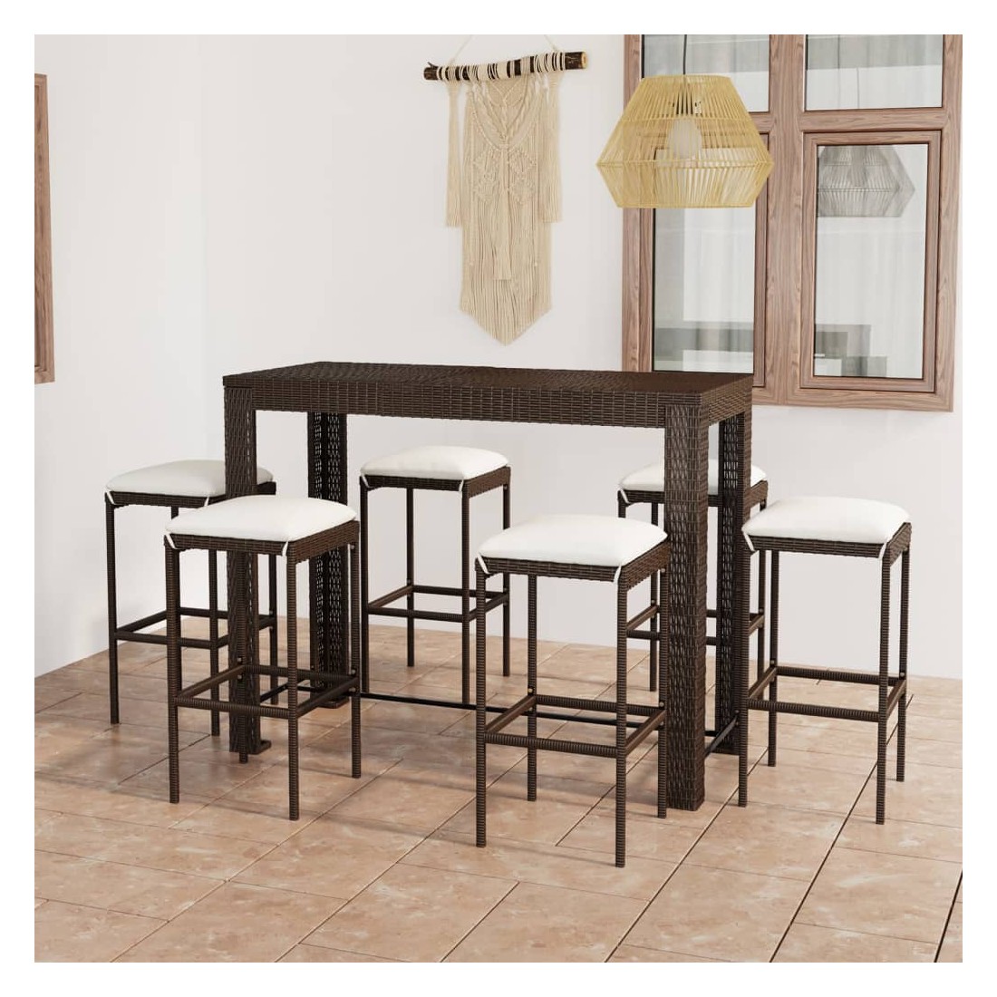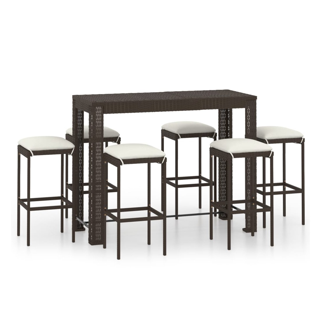 Ensemble de bar de jardin 7 pcs coussins Résine tressée Marron