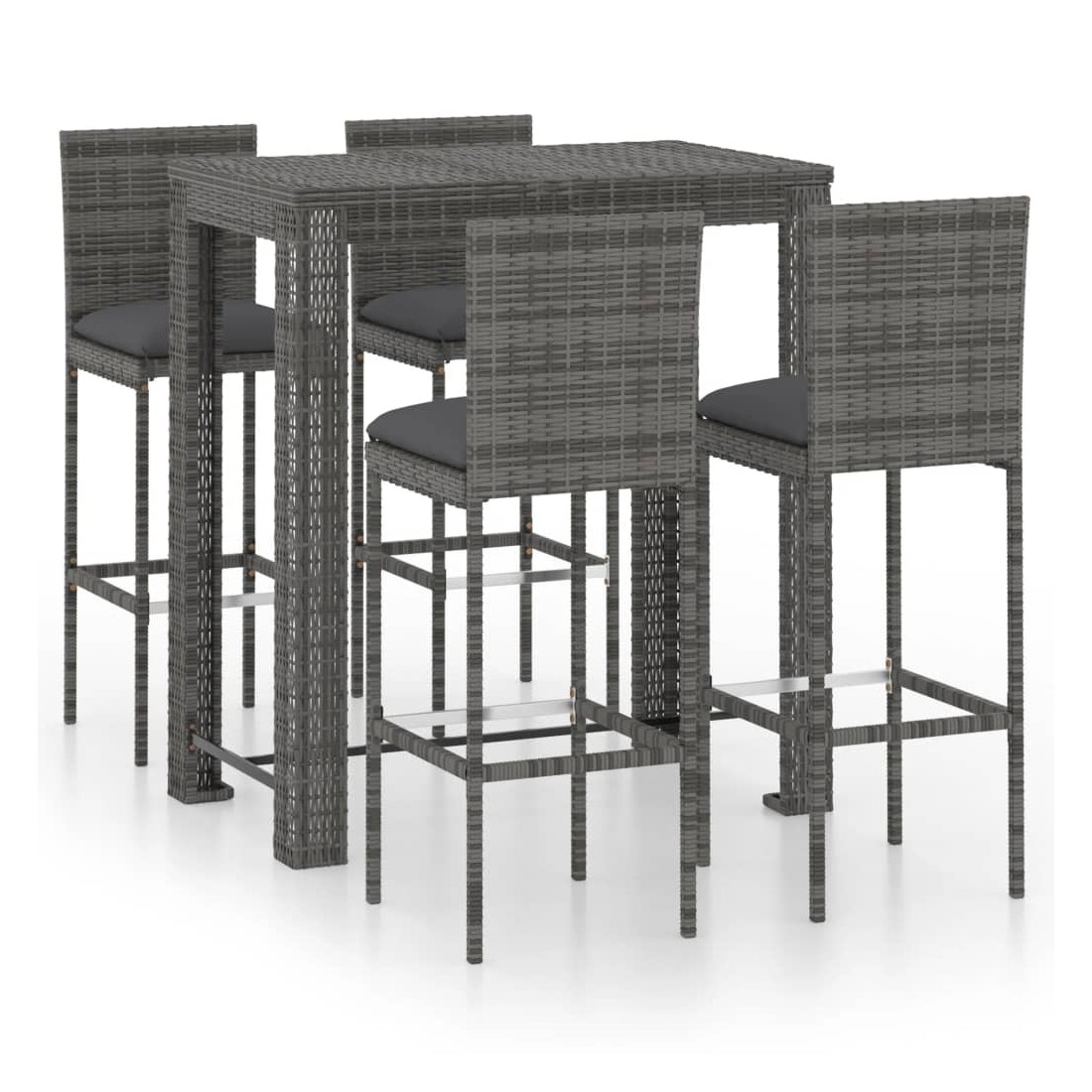 Cet ensemble élégant de bar de jardin vous permet de passer des moments agréables et confortables avec votre famille et vos amis. La table de bar est soutenue par un cadre en acier enduit de poudre, ce qui la rend stable et robuste. Le dessus de table carré est idéal pour placer des boissons, de la nourriture ou des objets décoratifs. Les tabourets ont une construction solide de cadre en acier et sont faits de résine tressée résistante aux intempéries, assurant la stabilité et sont faciles à déplacer. Le coussin et le repose-pied ajoutent également du confort d’assise supplémentaire au tabouret. La housse de coussin en polyester avec fermeture éclair dissimulée le rend facile à nettoyer.
