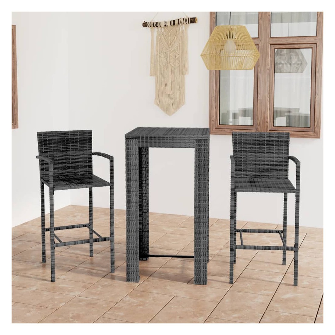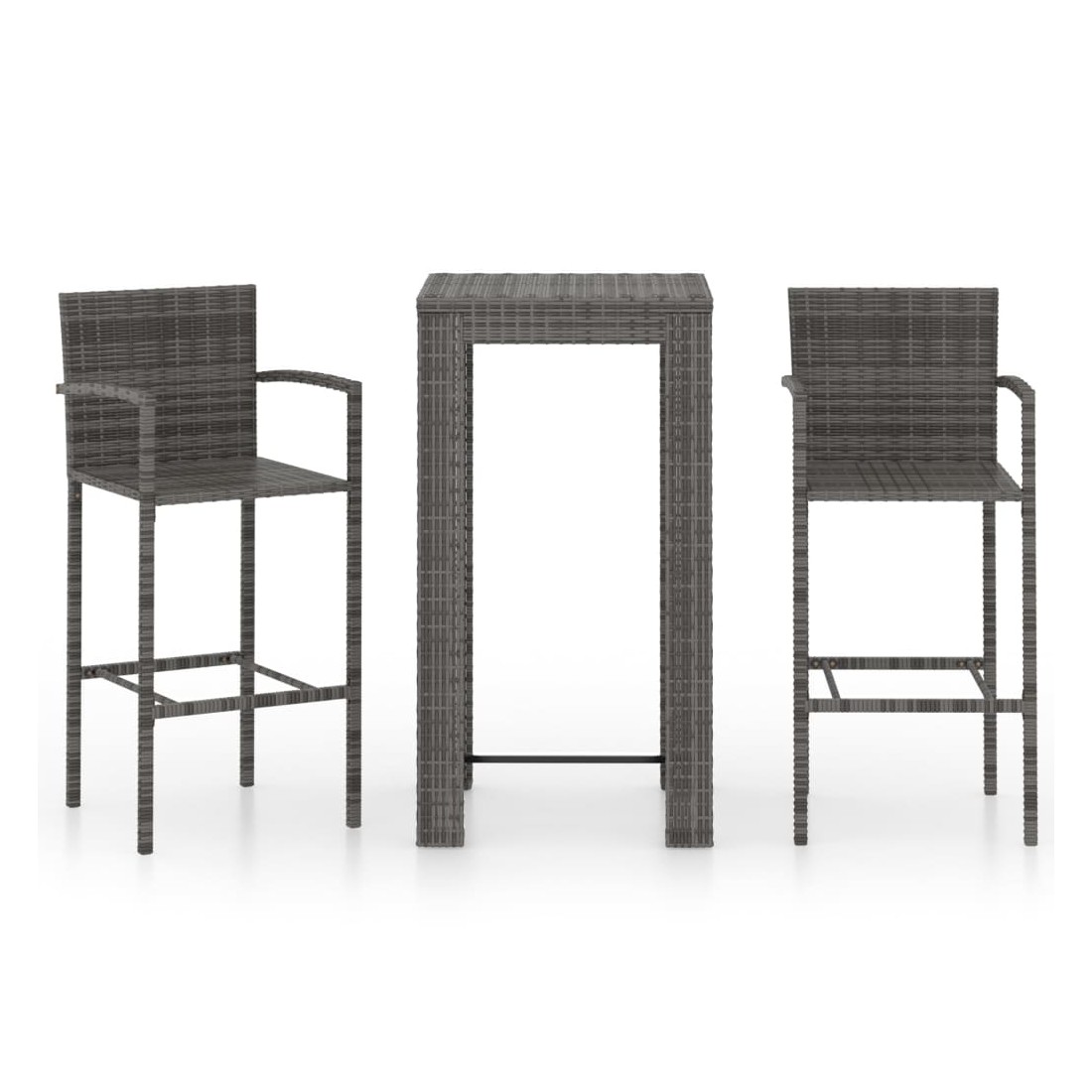 Ensemble de bar d'extérieur 3 pcs accoudoir Résine tressée Gris