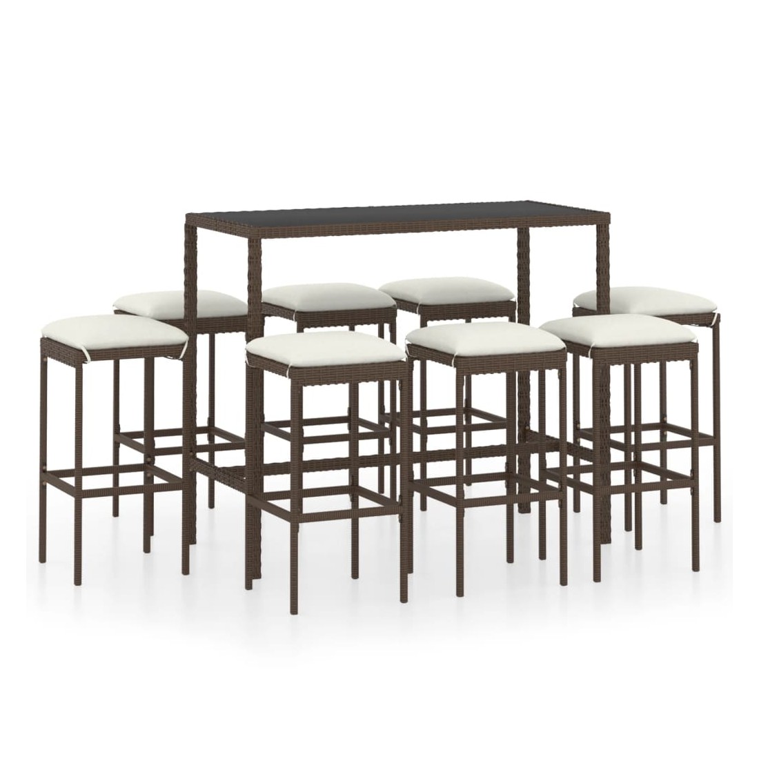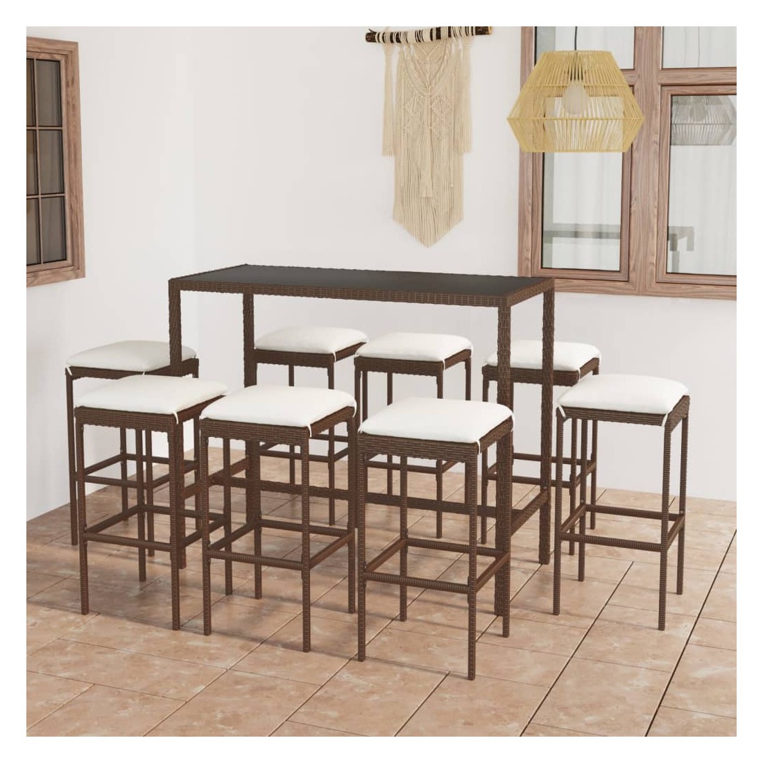 Ensemble de bar de jardin 9 pcs coussins Résine tressée Marron