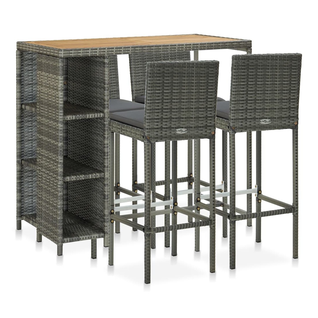 Ensemble de bar de jardin 5 pcs et coussins Résine tressée Gris