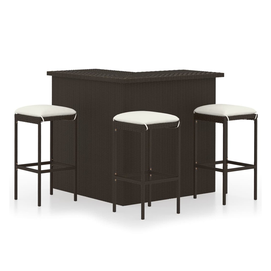 Ensemble de bar de jardin 4 pcs coussins Résine tressée Marron