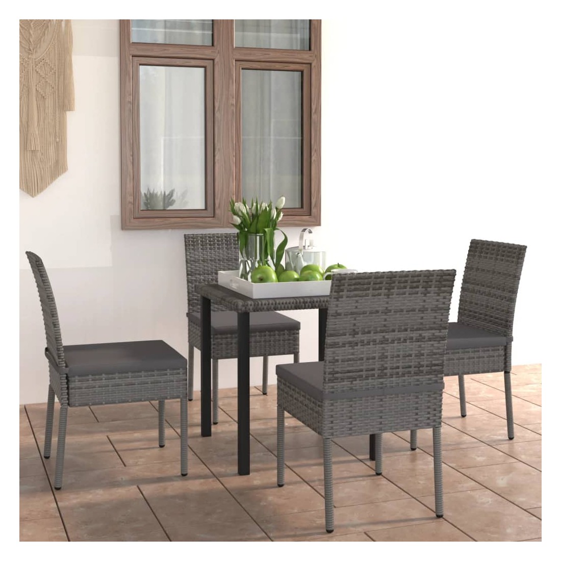 Cet ensemble de salle à manger de jardin est conçu pour être le point de mire de votre jardin ou patio ! Le cadre en acier rend cette table et ces chaises solides et stables. Comme l’ensemble est également léger, tous les articles sont faciles à déplacer et adaptés pour une utilisation à l’extérieur. Grâce à la résine tressée résistante aux intempéries et à l’eau, le mobilier d’extérieur est facile à nettoyer et durable. Les coussins de siège bien rembourrés et amovibles offrent un confort supplémentaire. Remarque : nous vous recommandons de couvrir l'ensemble pendant la pluie, la neige et le gel.