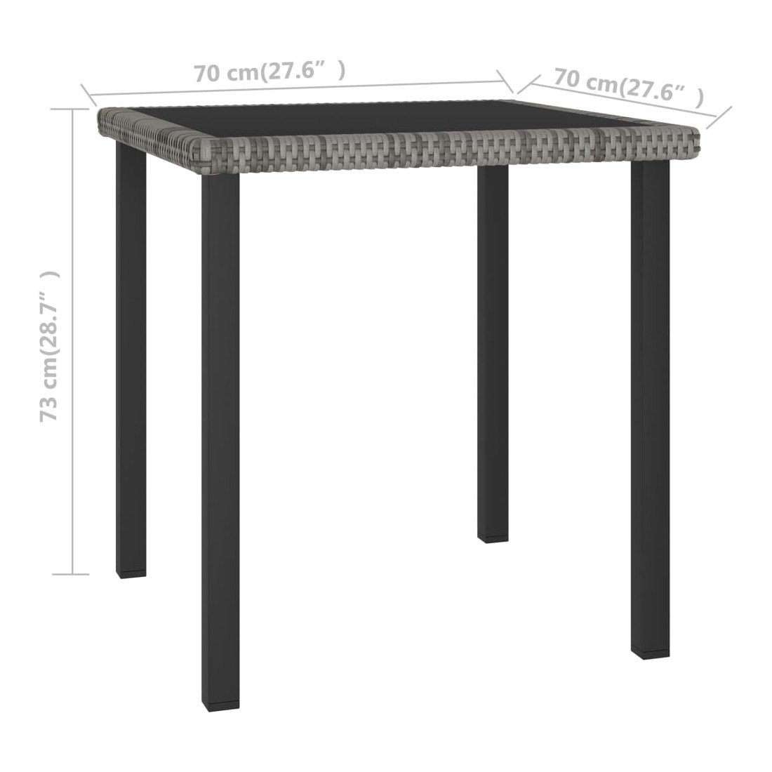 • Dimensions de la table : 70 x 70 x 73 cm (L x l x H)