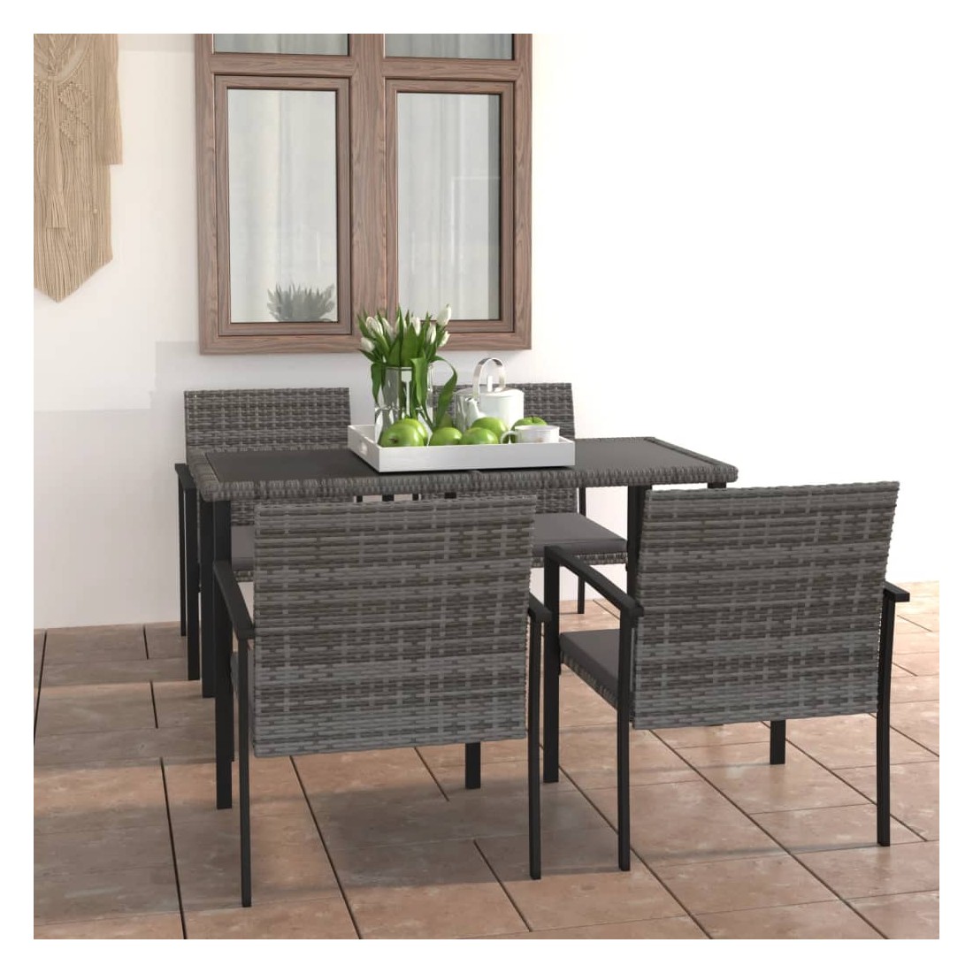 Ensemble à manger de jardin 5 pcs Résine tressée Gris