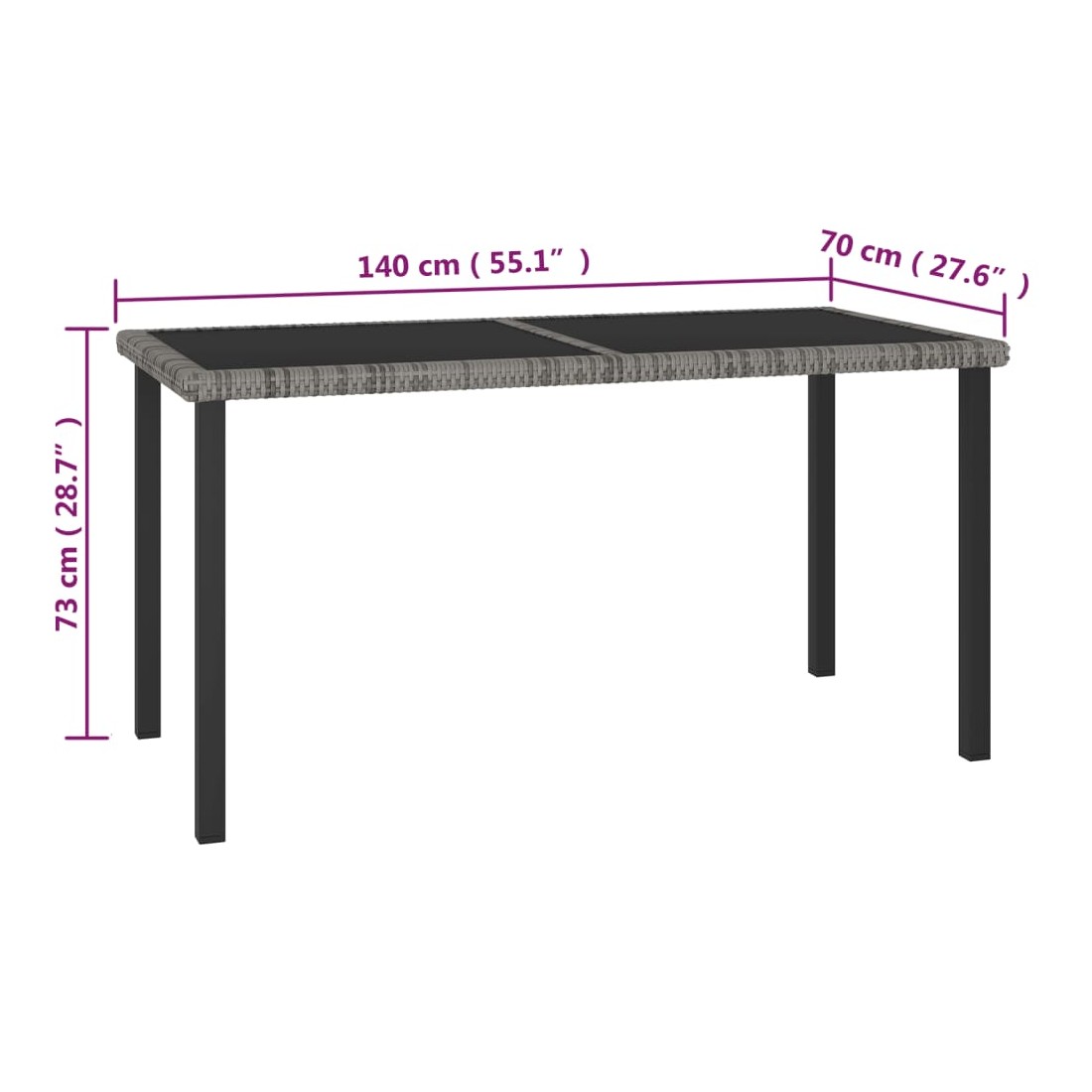 • Dimensions de la table : 140 x 70 x 73 cm (L x l x H)