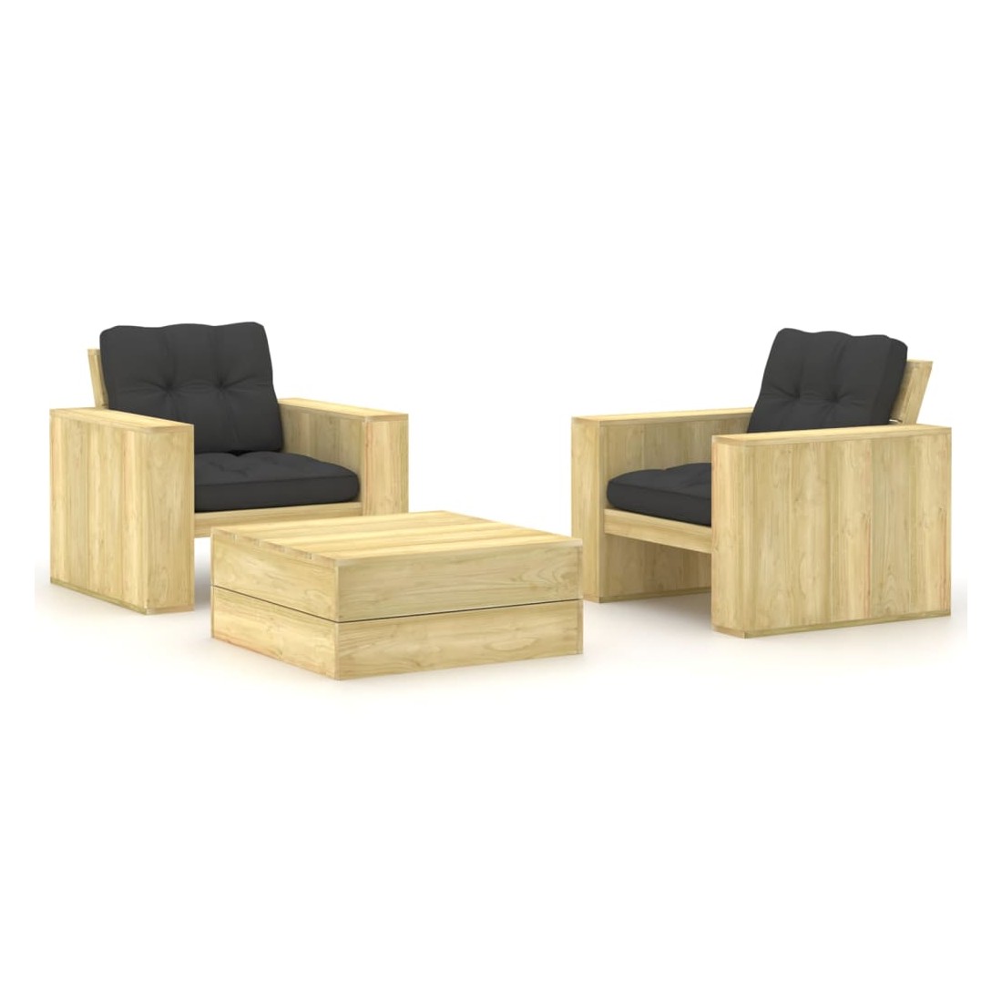 Salon de jardin 3 pcs avec coussins bois de pin imprégné