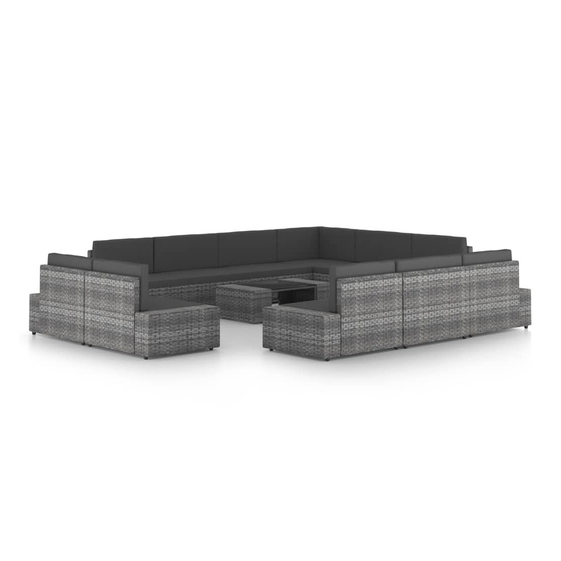 Salon de jardin 12 pcs avec coussins Gris Résine tressée