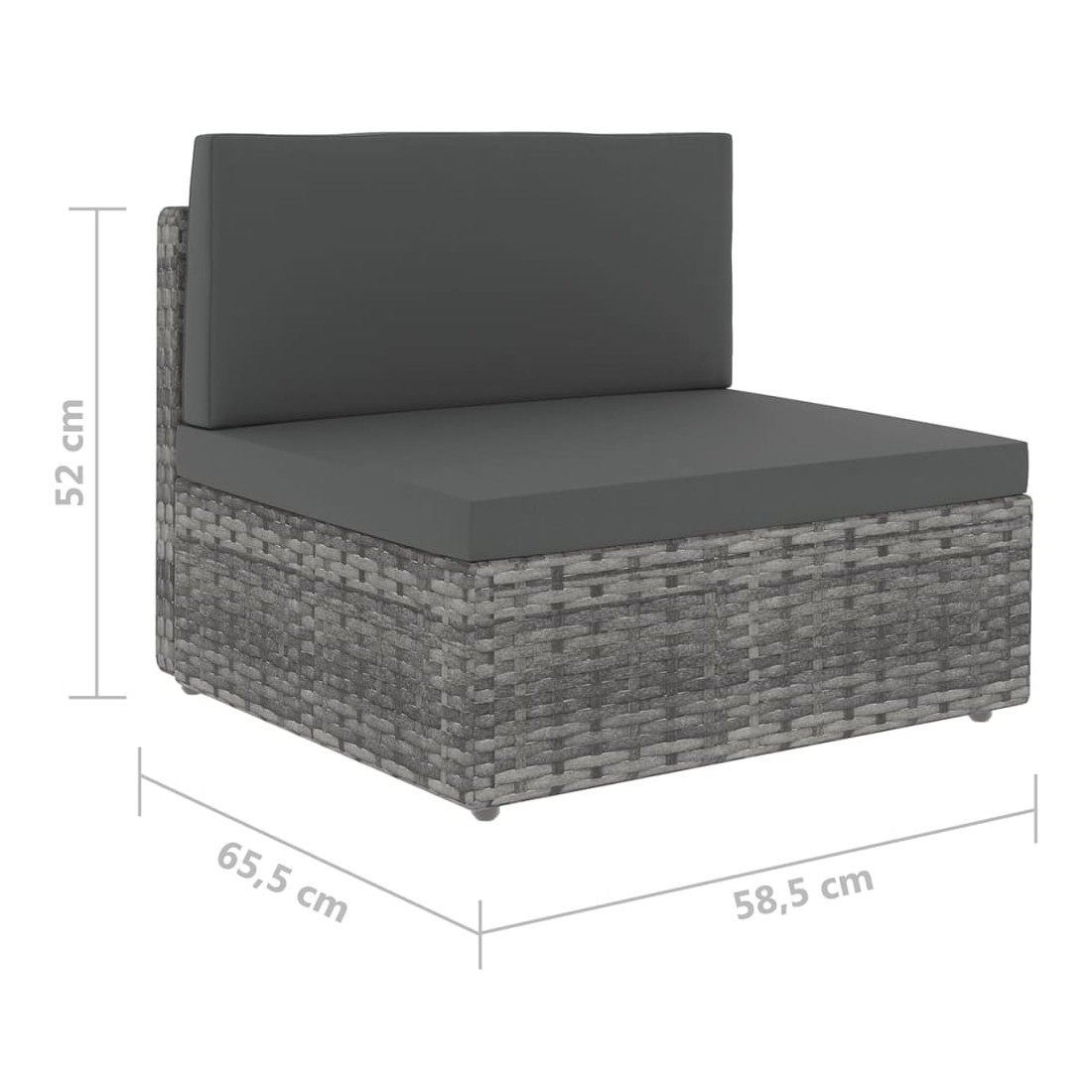 - Dimensions du canapé central : 58,5 x 65,5 x 52 cm (l x P x H)