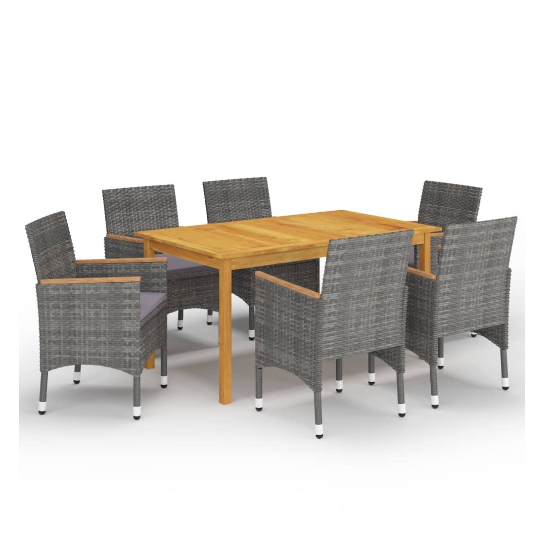 Créez une esthétique convaincante et uniforme dans votre espace extérieur avec cet ensemble de salle à manger de jardin ! La table de salle à manger est en bois d’acacia massif avec une finition à l’huile, ce qui la rend stable, durable et facile à entretenir. Dotées d’un cadre en acier enduit de poudre recouvert de résine tressée résistante aux intempéries, ces chaises sont robustes et faciles à nettoyer. La chaise d’extérieur, conçue avec dossier incurvé et accoudoirs, présente une forme plus ergonomique pour un confort maximal. Les accoudoirs sont joliment décorés en bois d'acacia massif, ce qui apporte une sensation de charme rustique. De plus, les coussins bien rembourrés offrent un confort suprême pendant votre temps assis. Remarque importante : Nous vous recommandons de couvrir l'ensemble de salle à manger pendant la pluie, la neige et le gel pour une utilisation durable.