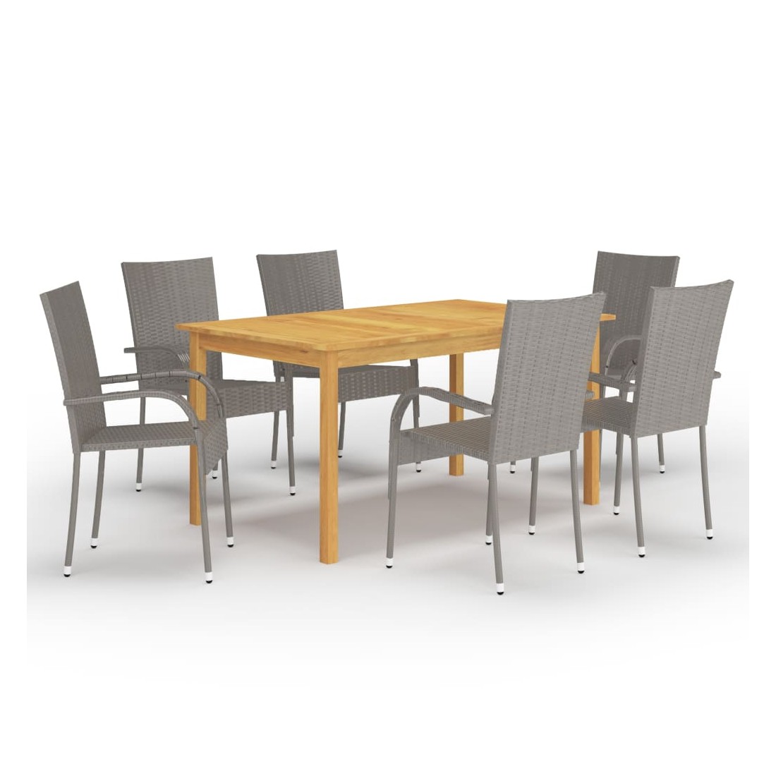 Créez une esthétique convaincante et uniforme dans votre espace extérieur avec cet ensemble de salle à manger de jardin ! La table de salle à manger est en bois d’acacia massif avec une finition à l’huile, ce qui la rend stable, durable et facile à entretenir. Dotées d’un cadre en acier enduit de poudre recouvert de résine tressée résistante aux intempéries, ces chaises sont robustes et faciles à nettoyer. Les chaises d’extérieur sont légères et peuvent être empilées pour gagner de la place lorsqu'elles ne sont pas utilisées. Remarque importante : Nous vous recommandons de couvrir l'ensemble de salle à manger pendant la pluie, la neige et le gel pour une utilisation durable.