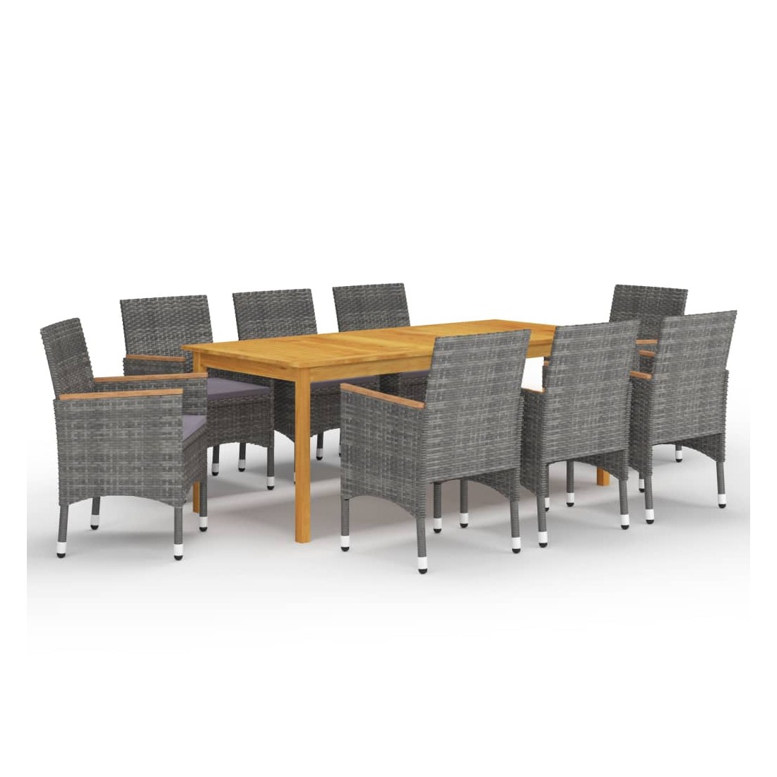 Créez une esthétique convaincante et uniforme dans votre espace extérieur avec cet ensemble de salle à manger de jardin ! La table de salle à manger est en bois d’acacia massif avec une finition à l’huile, ce qui la rend stable, durable et facile à entretenir. Dotées d’un cadre en acier enduit de poudre recouvert de résine tressée résistante aux intempéries, ces chaises sont robustes et faciles à nettoyer. La chaise d’extérieur, conçue avec dossier incurvé et accoudoirs, présente une forme plus ergonomique pour un confort maximal. Les accoudoirs sont joliment décorés en bois d'acacia massif, ce qui apporte une sensation de charme rustique. De plus, les coussins bien rembourrés offrent un confort suprême pendant votre temps assis. Remarque importante : Nous vous recommandons de couvrir l'ensemble de salle à manger pendant la pluie, la neige et le gel pour une utilisation durable.
