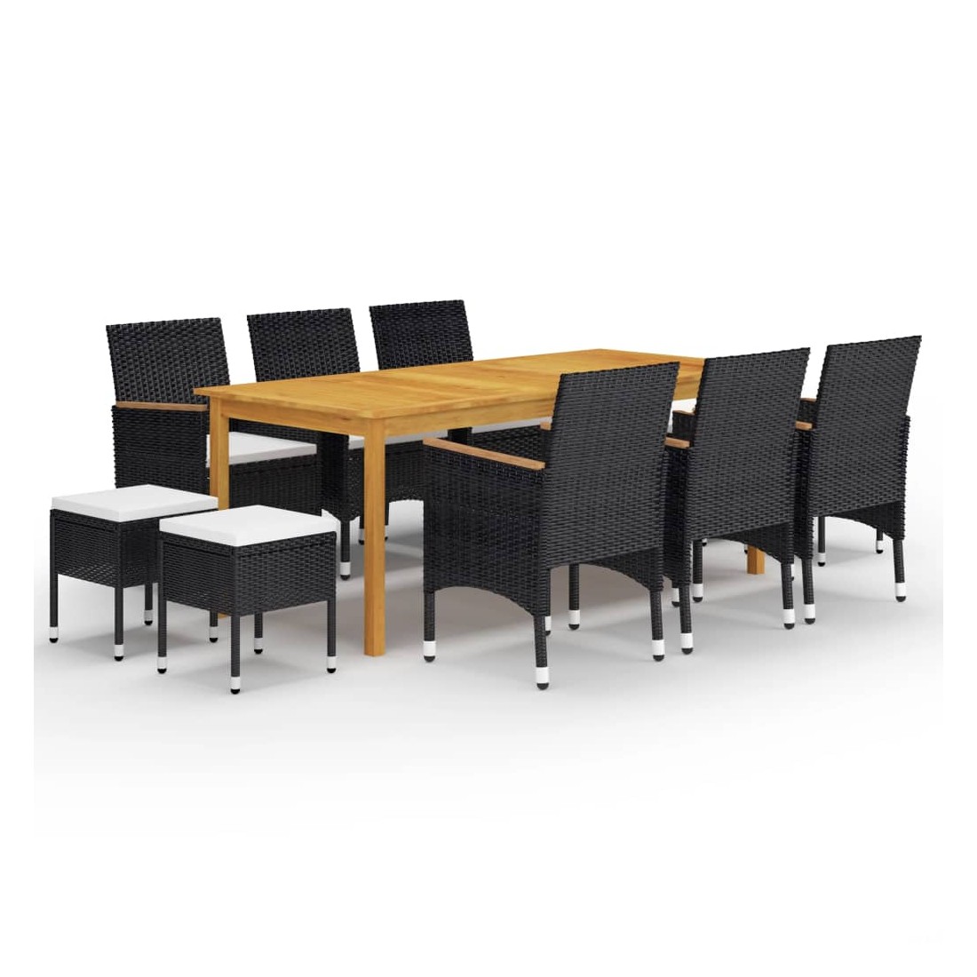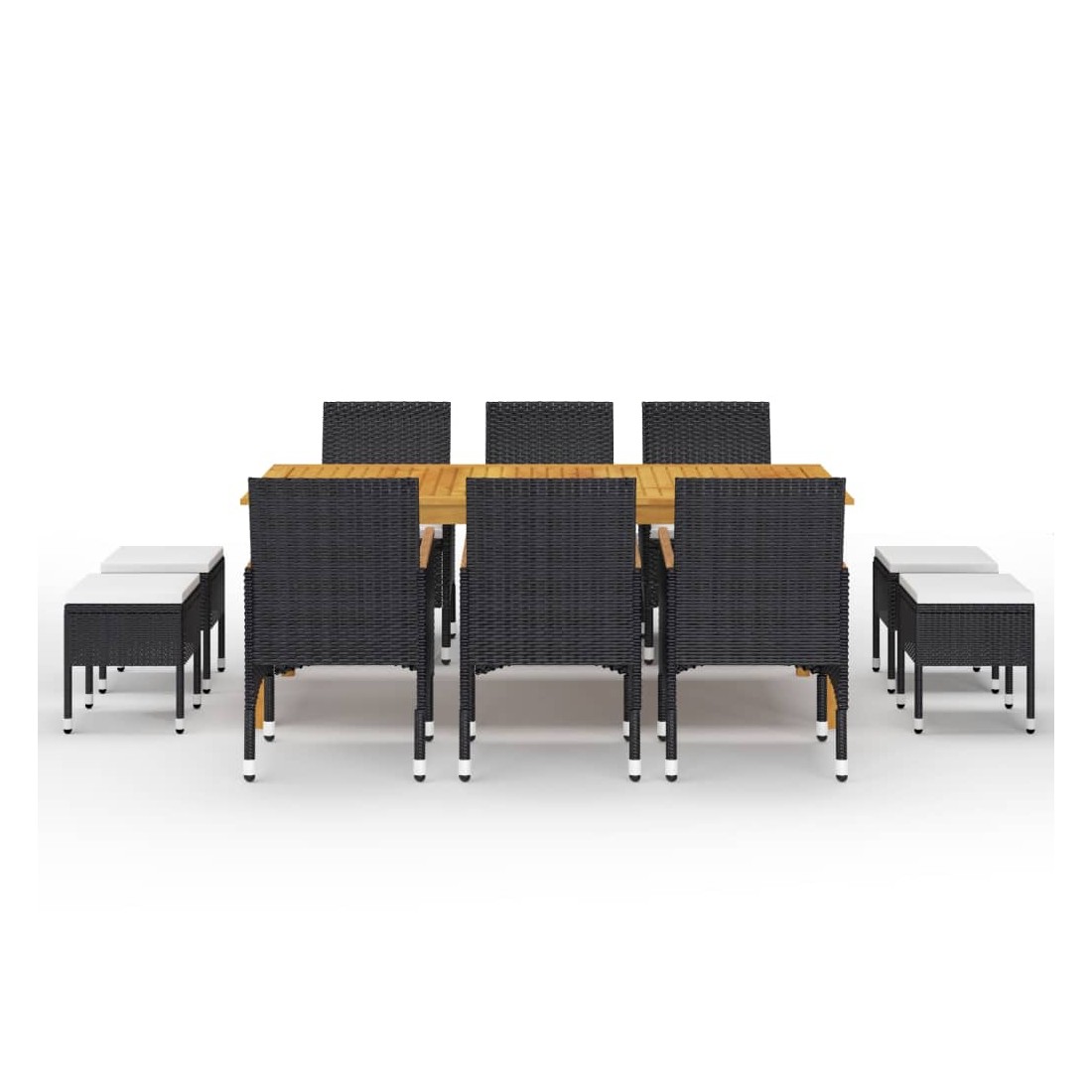 Créez une esthétique convaincante et uniforme dans votre espace extérieur avec cet ensemble de salle à manger de jardin ! La table de salle à manger est en bois d’acacia massif avec une finition à l’huile, ce qui la rend stable, durable et facile à entretenir. Dotés d’un cadre en acier enduit de poudre recouvert de résine tressée résistante aux intempéries, ces chaises et tabourets sont robustes et faciles à nettoyer. La chaise d'extérieur, conçue avec un dossier et des accoudoirs incurvés, présente une forme plus ergonomique pour un confort maximal. Les accoudoirs sont joliment décorés avec du bois d'acacia massif, ce qui apporte une touche de charme rustique. Chaque siège est doté d'un coussin rembourré amovible pour ajouter du confort pendant votre temps de détente. Remarque importante : Nous vous recommandons de couvrir l'ensemble de salle à manger pendant la pluie, la neige et le gel pour une utilisation durable.