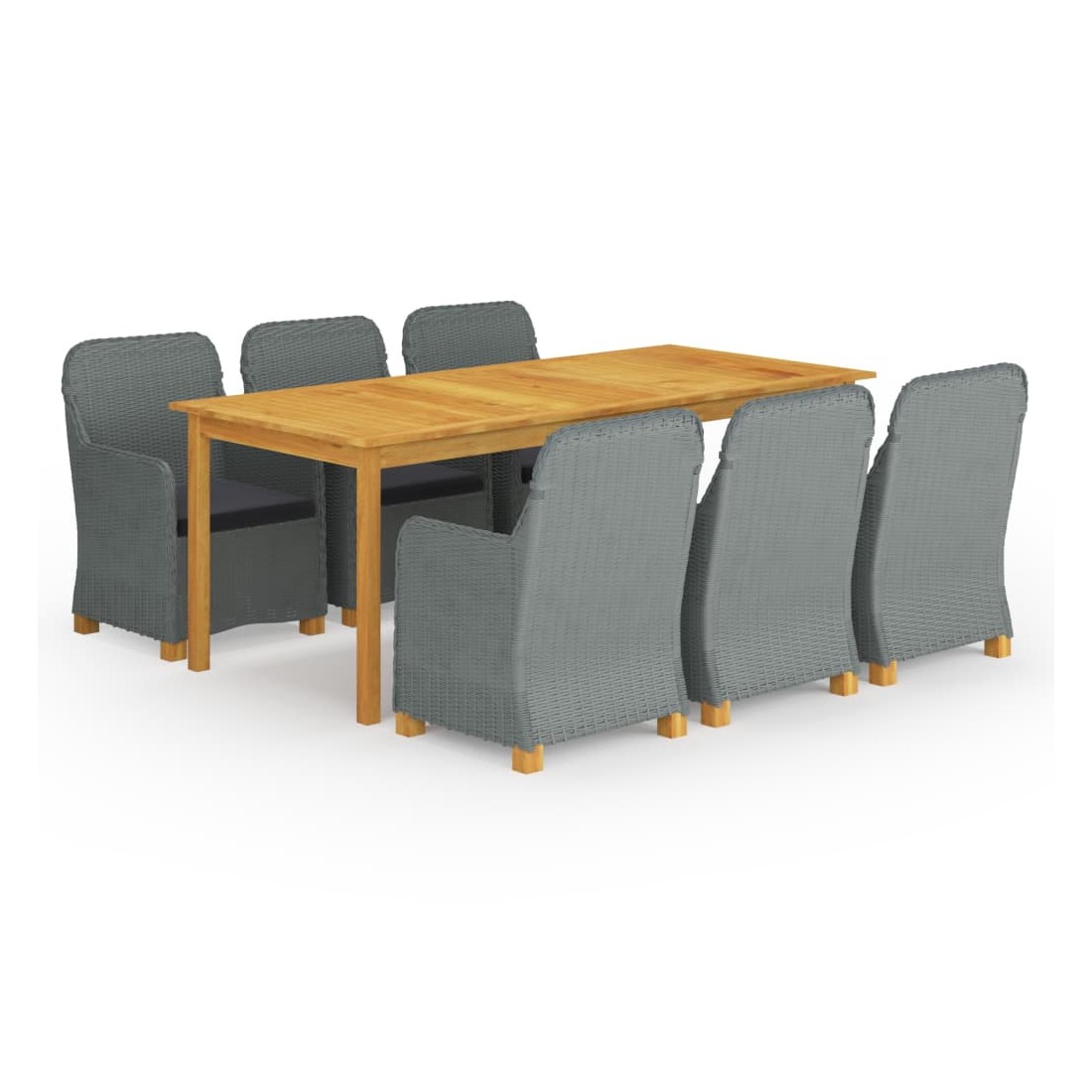 Créez une esthétique convaincante et uniforme dans votre espace extérieur avec cet ensemble de salle à manger de jardin ! La table de salle à manger est fabriquée en bois d’acacia massif avec une finition à l’huile, ce qui la rend stable, durable et facile à entretenir. La chaise d’extérieur, dotée d’un cadre en acier enduit de poudre recouvert de résine tressée ronde, est robuste et facile à nettoyer. Les coussins bien rembourrés ajoutent un confort supplémentaire lors de votre temps de détente. La housse de coussin est équipée d’une fermeture éclair, amovible et lavable. De plus, les pieds en bois d’acacia massif ajoutent à sa robustesse et sa stabilité. Ces chaises de jardin sont faciles à déplacer grâce à leur construction légère. Remarque importante : Nous vous recommandons de couvrir l'ensemble de salle à manger pendant la pluie, la neige et le gel pour une utilisation durable.