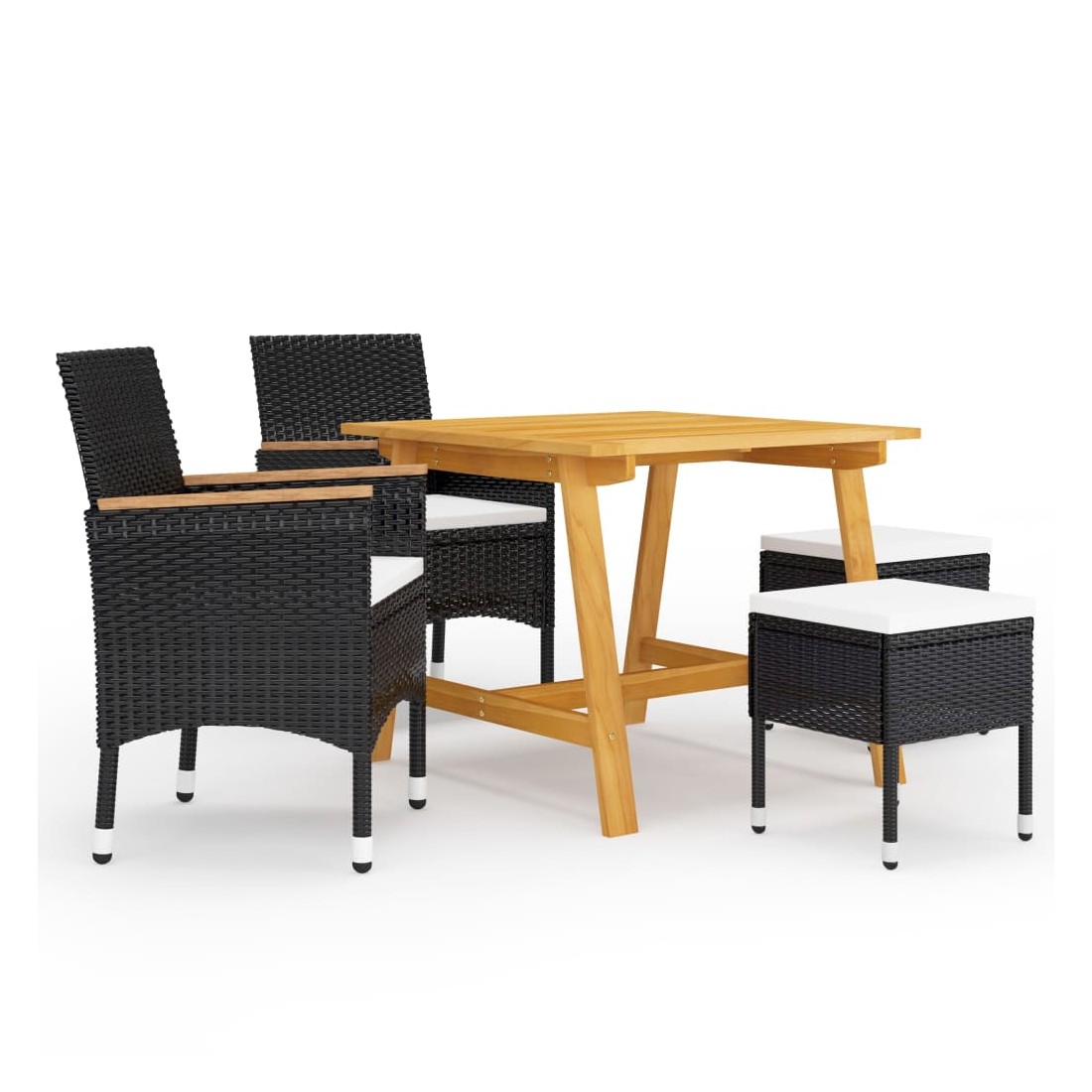 Créez une esthétique convaincante et uniforme dans votre espace extérieur avec cet ensemble de salle à manger de jardin ! La table de salle à manger est en bois d’acacia massif avec une finition à l’huile, ce qui la rend stable, durable et facile à entretenir. Dotés d’un cadre en acier enduit de poudre recouvert de résine tressée résistante aux intempéries, ces chaises et tabourets sont robustes et faciles à nettoyer. Conçue avec un dossier et des accoudoirs incurvés, la chaise à dîner a une forme plus ergonomique pour un confort maximal. De plus, les accoudoirs sont joliment décorés avec du bois d'acacia massif, ce qui apporte une touche de charme rustique. Chaque siège est doté d'un coussin rembourré amovible pour ajouter du confort pendant votre temps de détente. Remarque importante